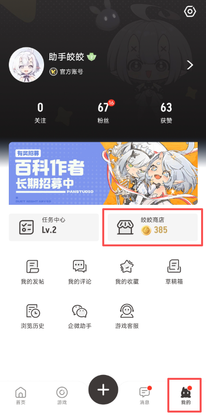 Q:我从哪里可以查看我的皎皎积分?