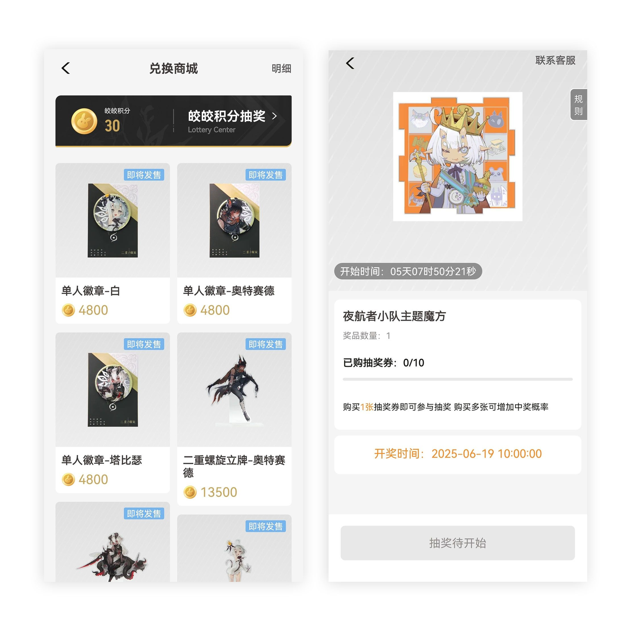 A:皎皎商店的商品数量有限,兑完为止,后续会不定期轮换,所以各位狩月人看到心仪的商品记得及时兑换,以免错过~