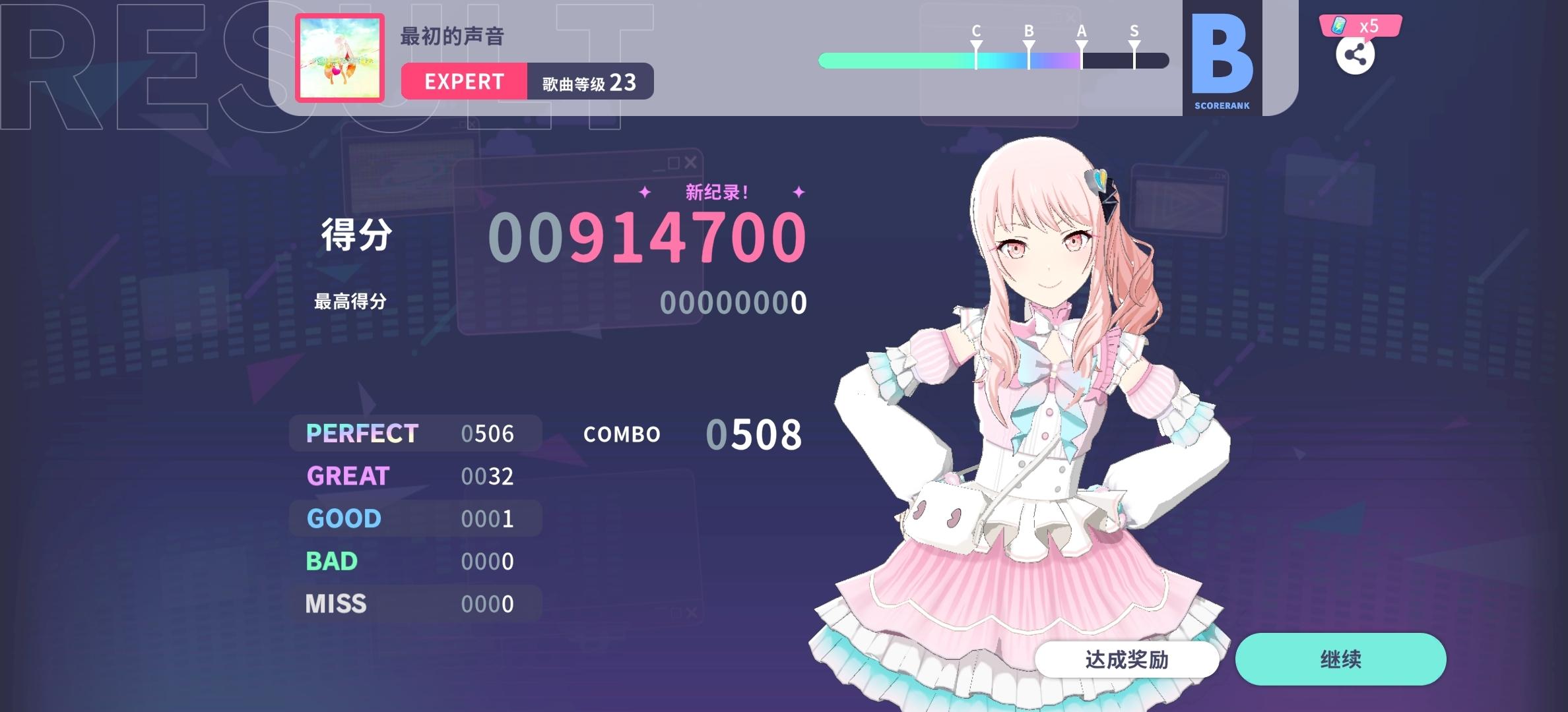 差一点就FULL了!!!本以为第一次打这首歌就打红色难度还能打满的