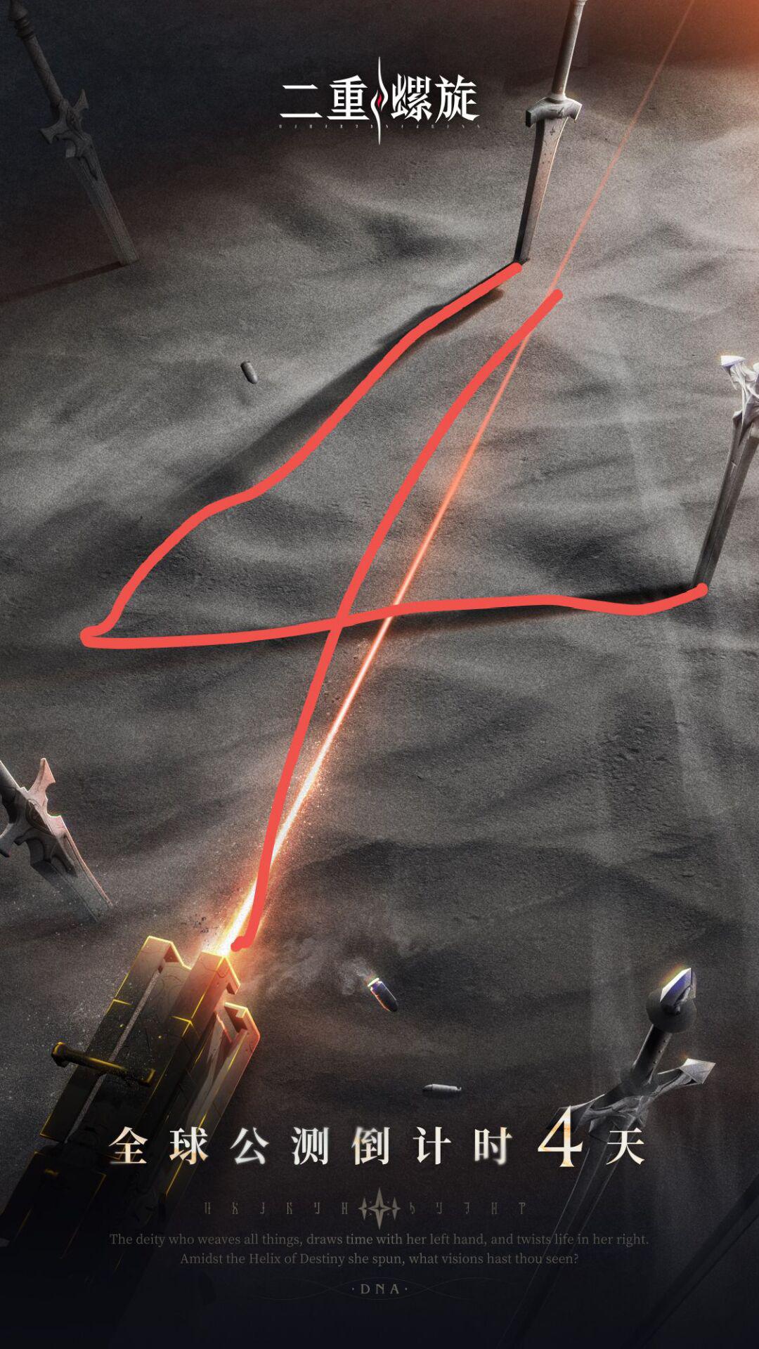 令日的数字构成。两把剑的影子与远程武器打出的激光构成4