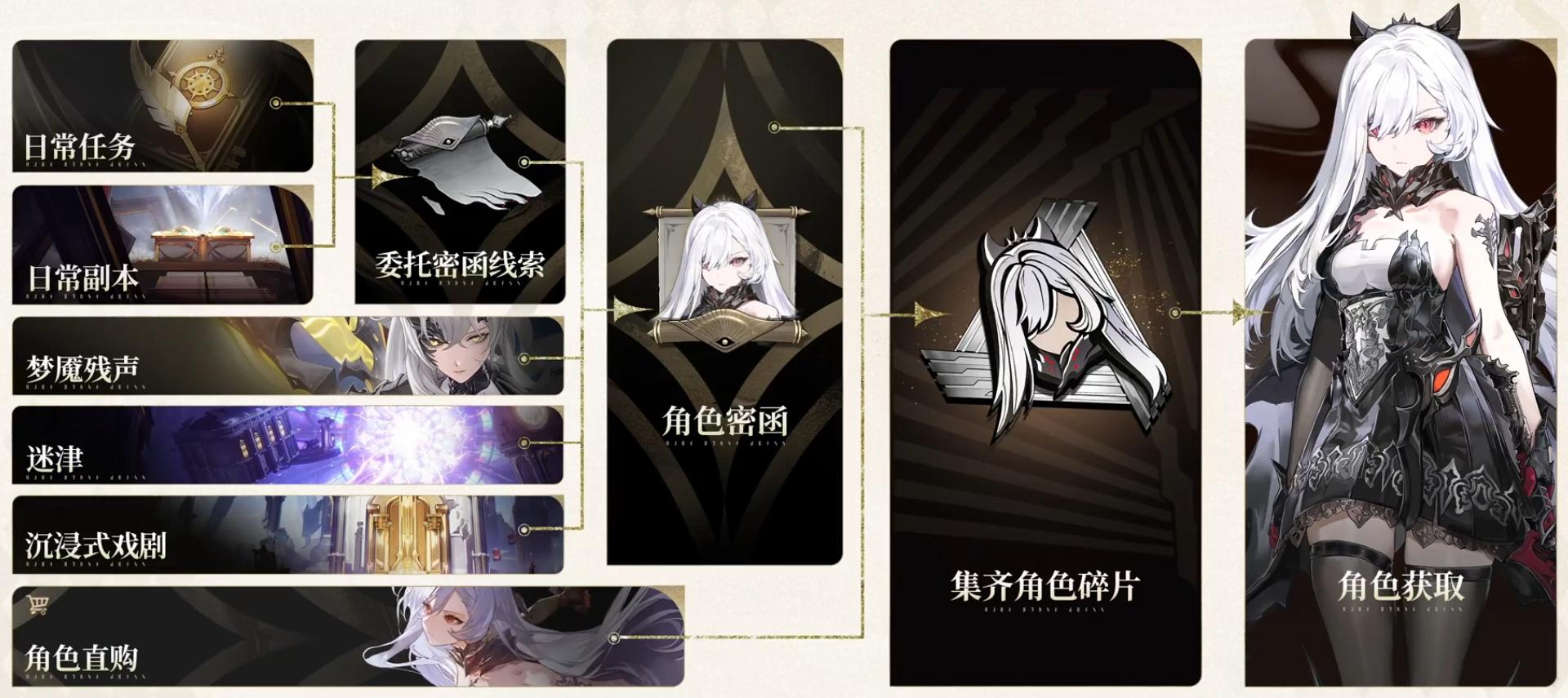 角色主要靠碎片合成,五大核心途径覆盖不同需求: 一、商城密函线索兑换 日常副本、任务等得密函线索,10个换1份指定角色密函,刷密函副本稳拿对应碎片。覆盖多数常驻角色,适合定向养卡。