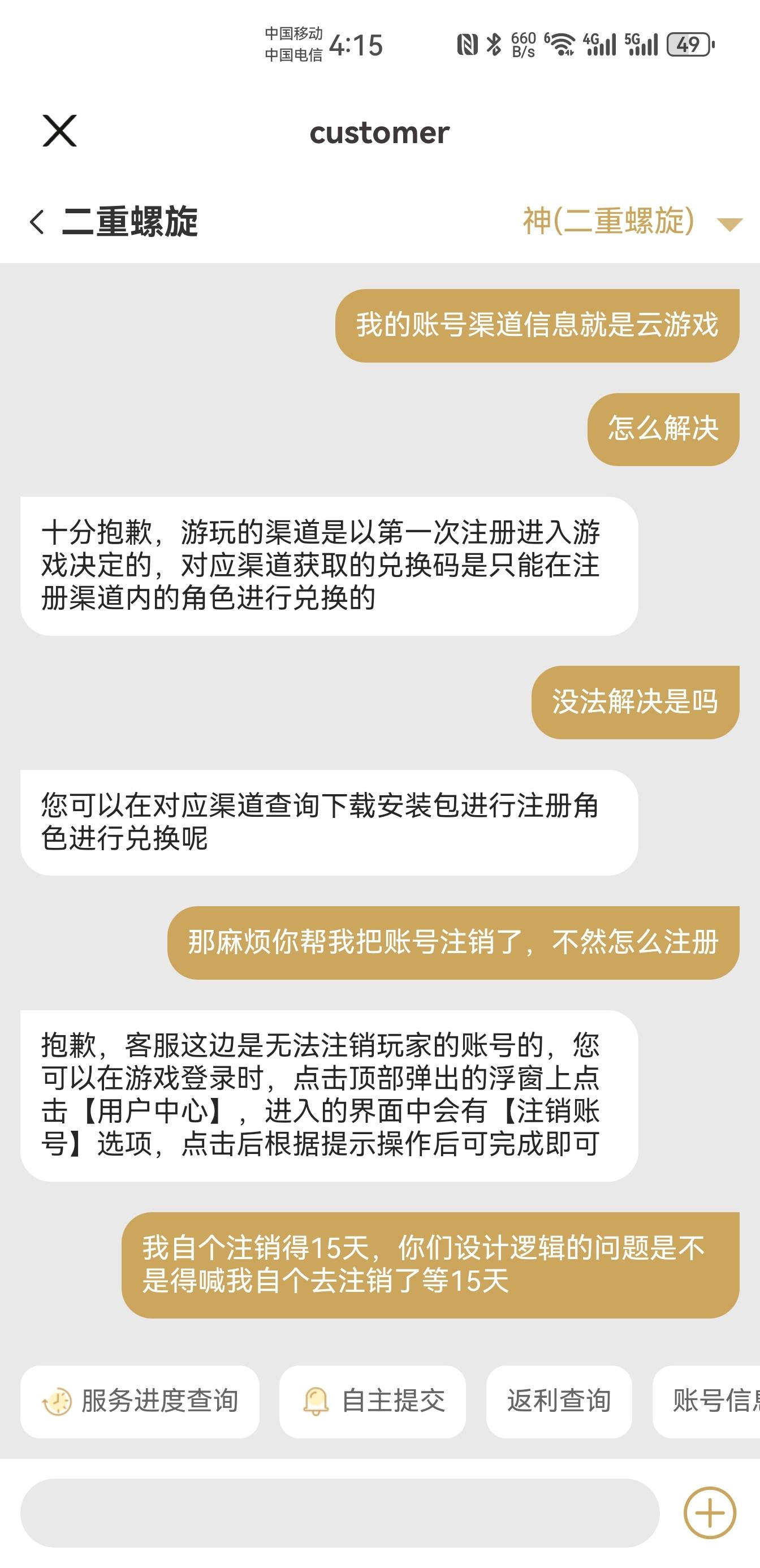 在官方的云游戏注册的账号导致无法使用各平台礼包码,且无法解决。