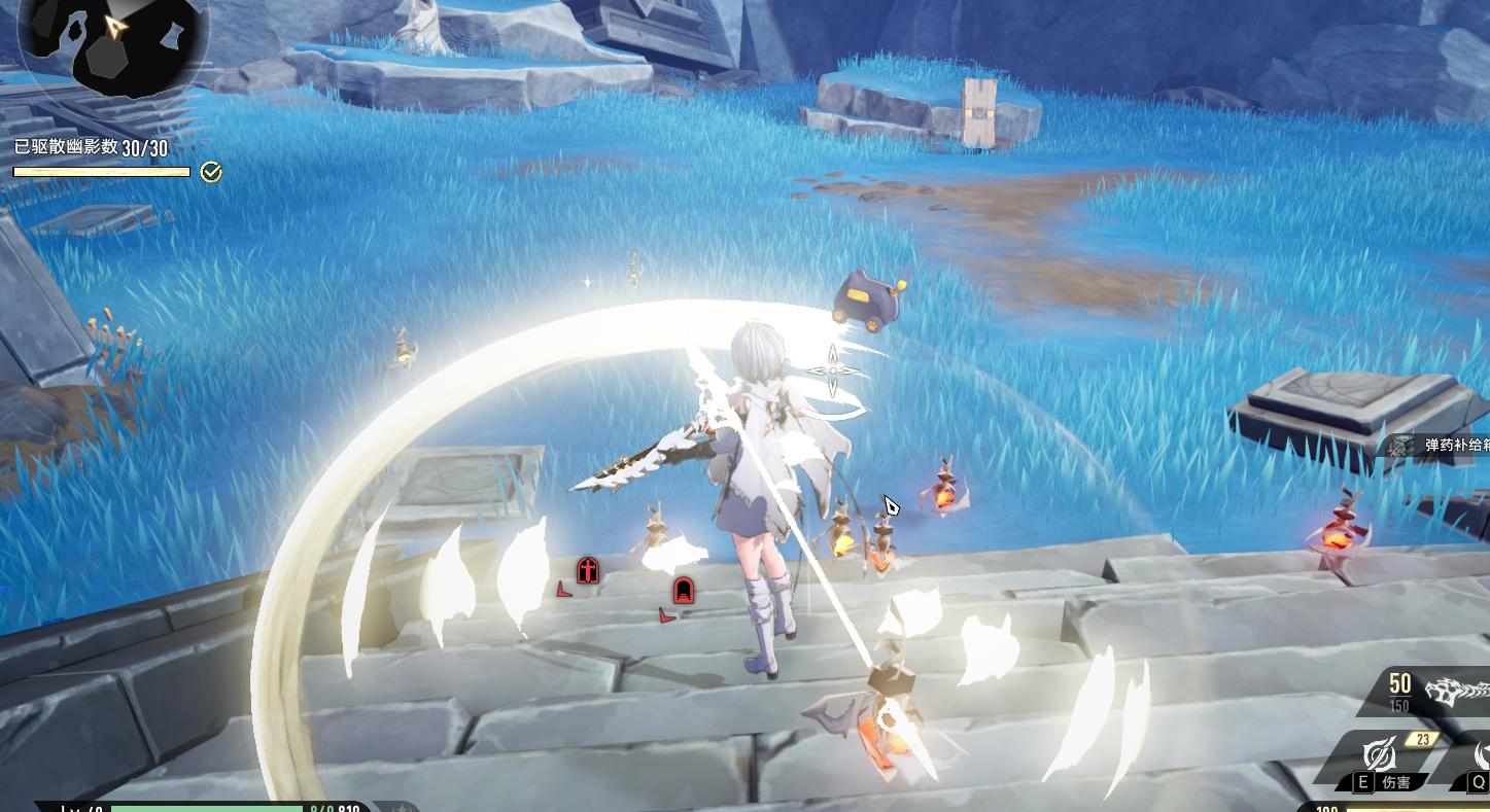 前期战斗建议:选择长枪➕远程枪。近战长按攻击后,枪会原地旋转,只需要站在中心切换远程枪攻击