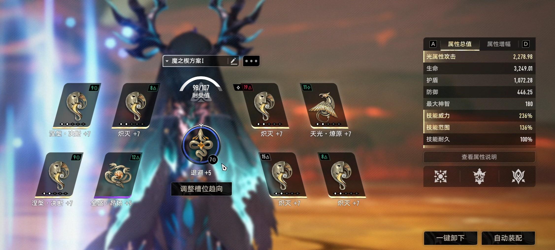 猛猛肝,硬是到了中午,你终于是给三张图纸全做成了金mod,你赶紧去换上,还想给一个增幅一下,结果发现你带上之后,紫mod的炽灭带不了了,最终的结果发现,四个金mod替换了四个紫mod,数值是一点没提升