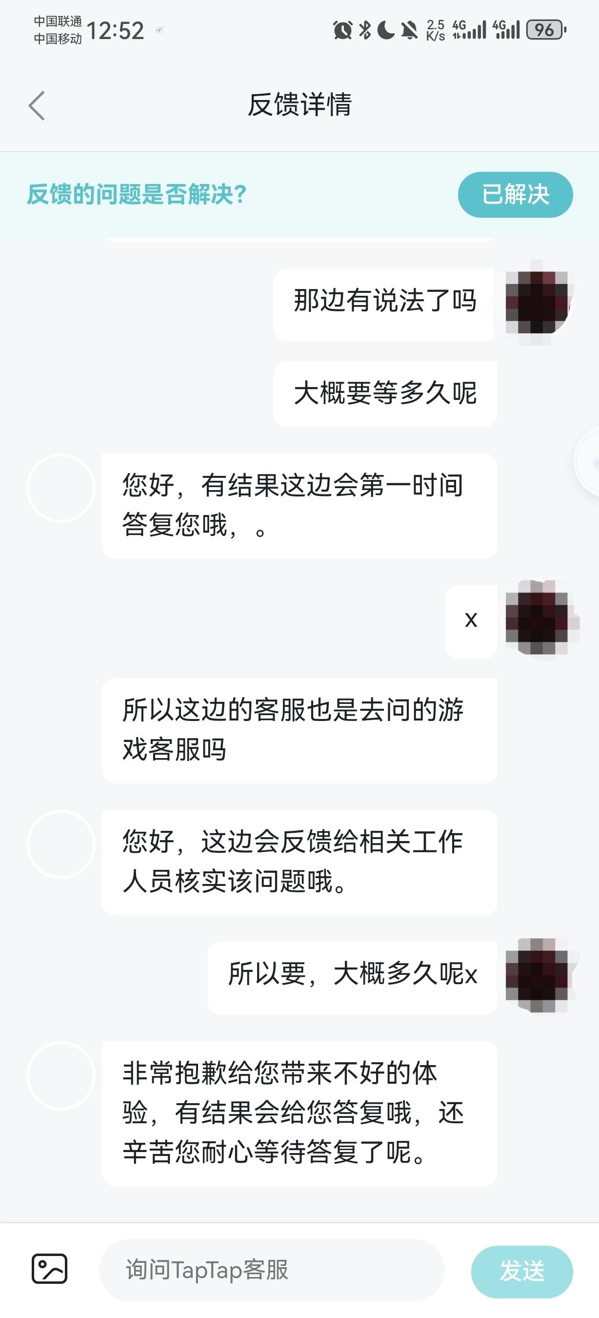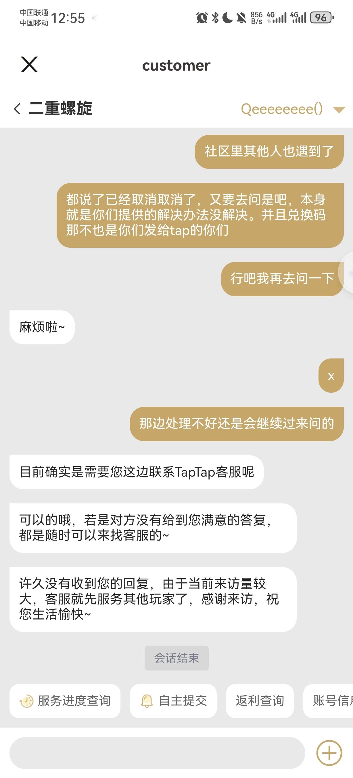 tap那边也是不管,就一句去向相关人员核实。客服聊天不显示时间的,那一串对话是我已经催了一天一夜了。