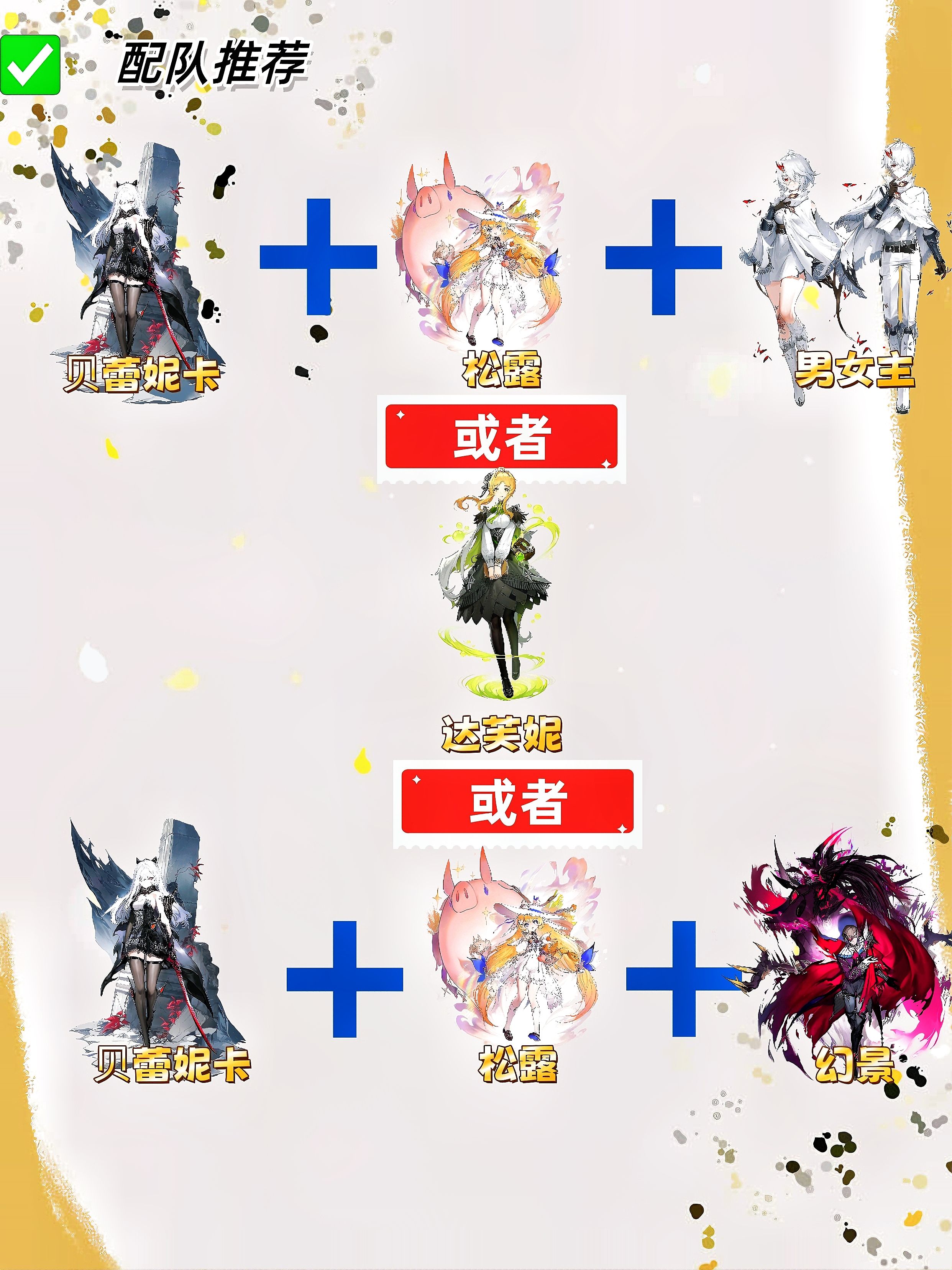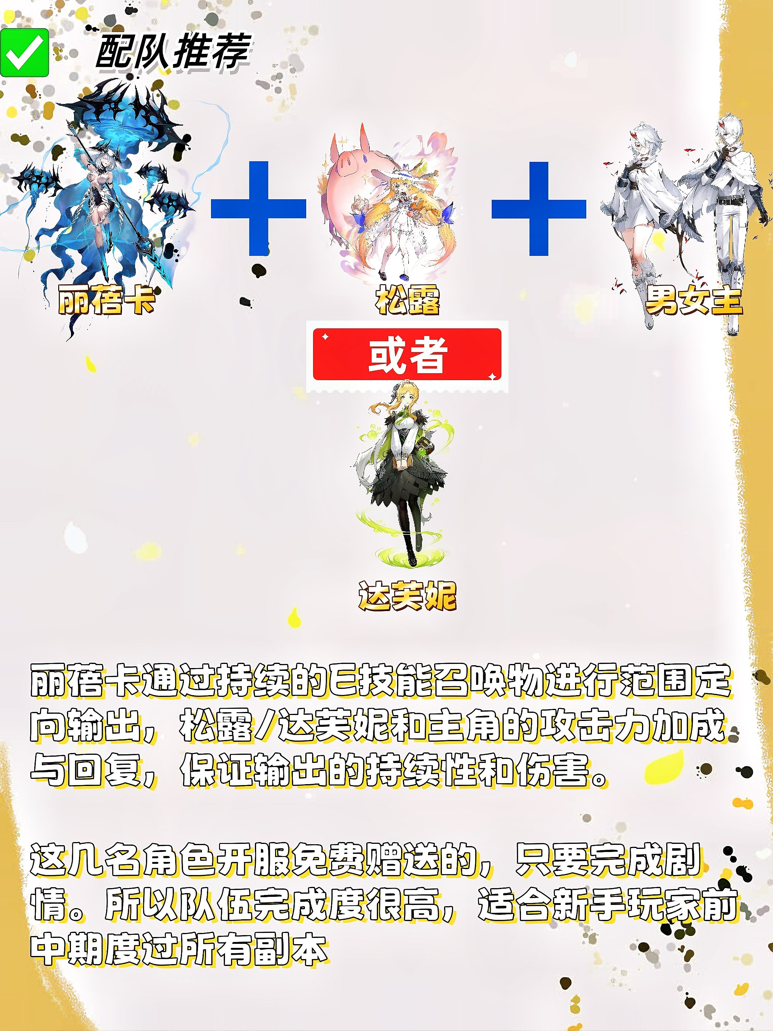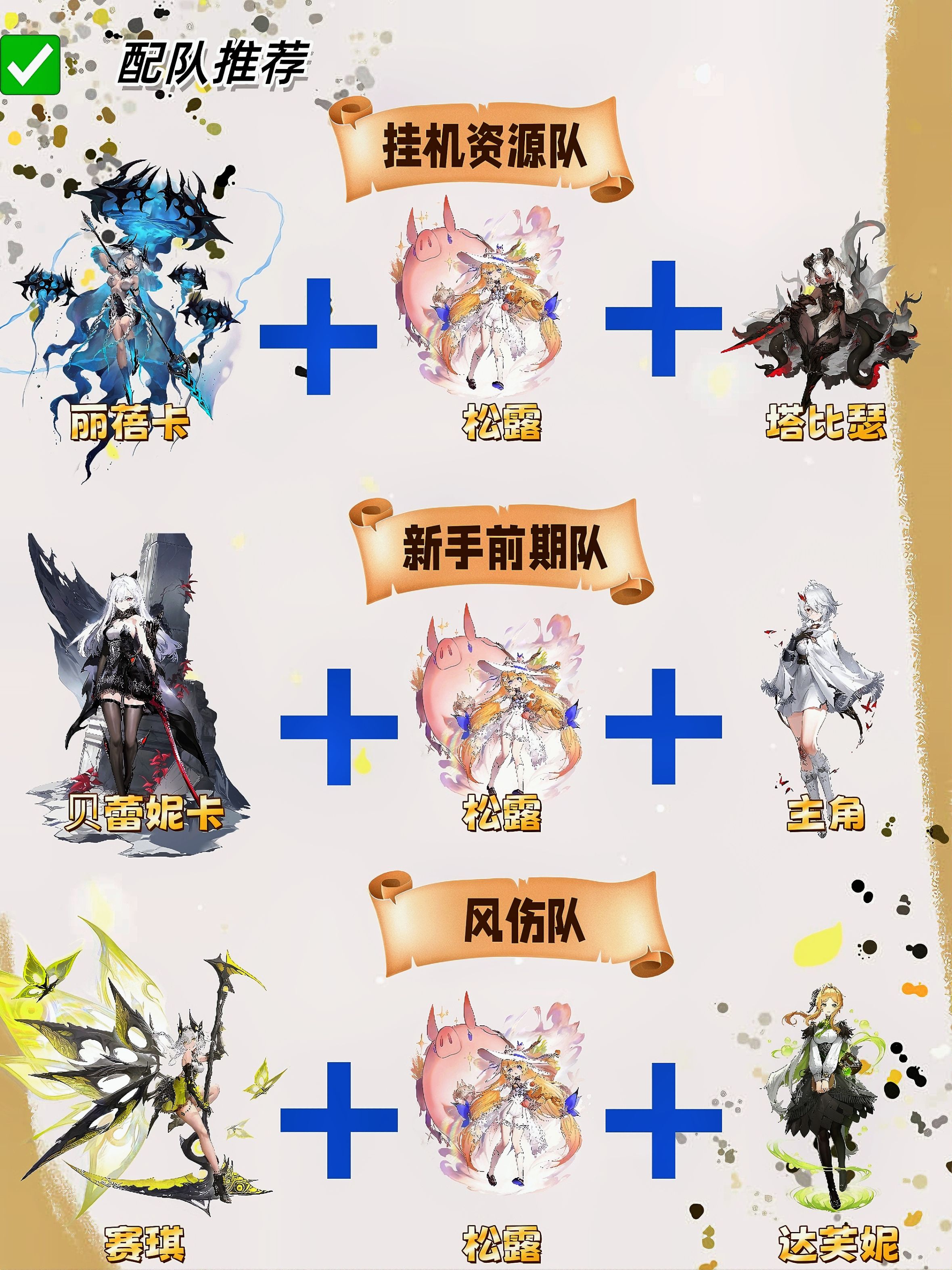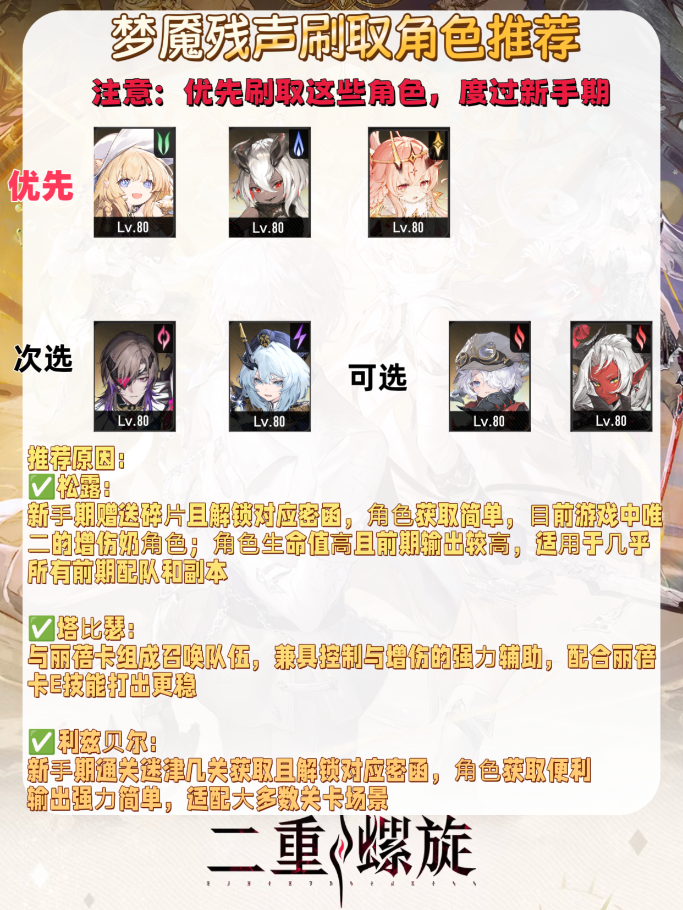 ✅️角色获取:通过日常/精英委托攒碎片,优先培养 1-2 个核心(如丽蓓卡、贝蕾妮卡)+1个辅助(如松露)。