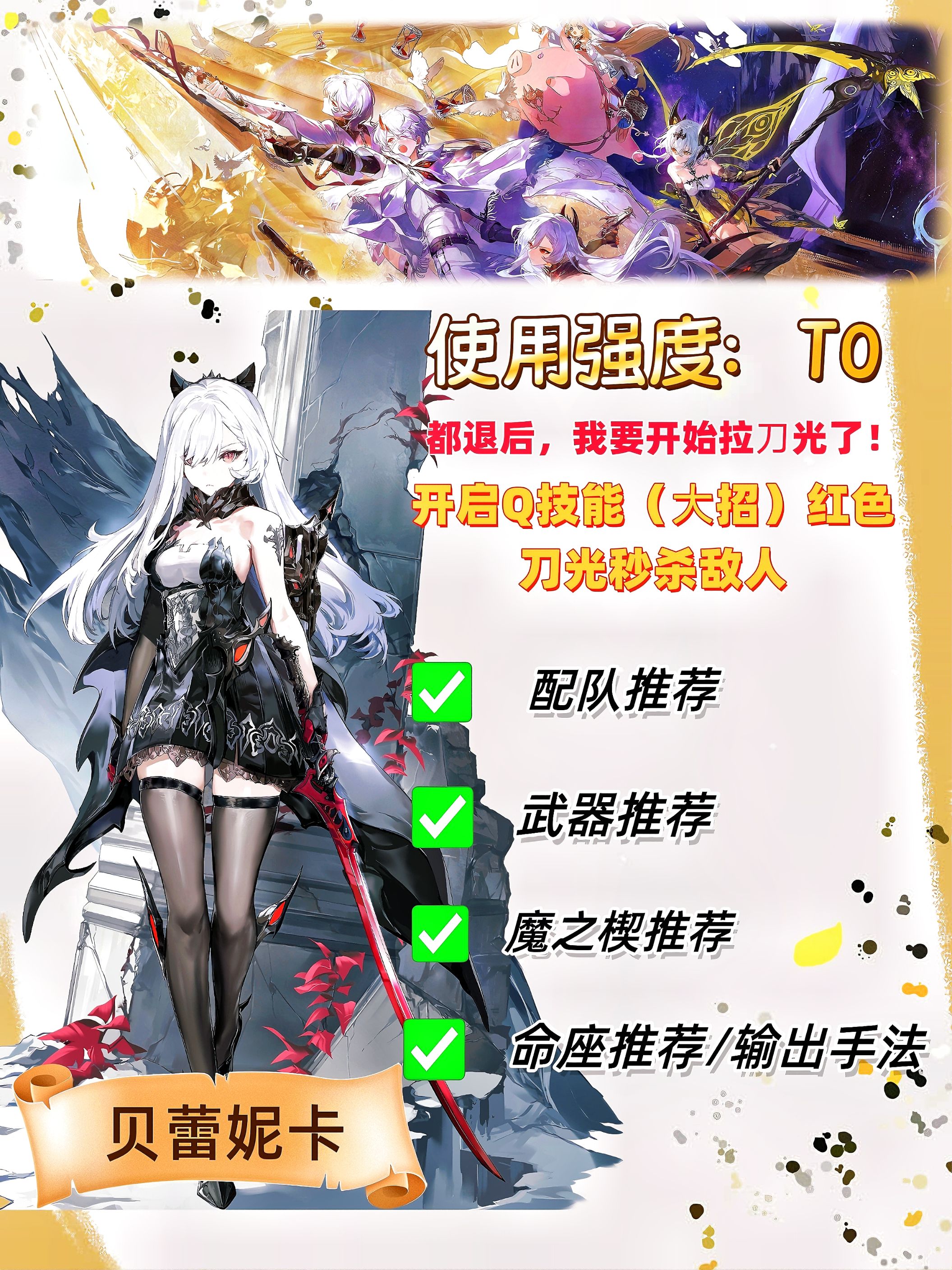 角色培养攻略还会继续更新:后续“赛琪”“妮弗尔夫人”“莉兹贝尔”“奥德赛德”等请大家稍等。