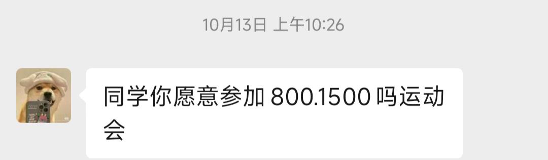 11,这是负责我学院运动会的学长,他好像给我去年体测成绩给开了,没参加过运动会好紧张明天下午就开始八百米了