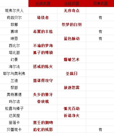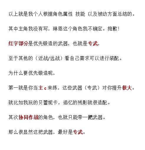 以上是我个人总结的角色优先打造的武器,也就是专武。