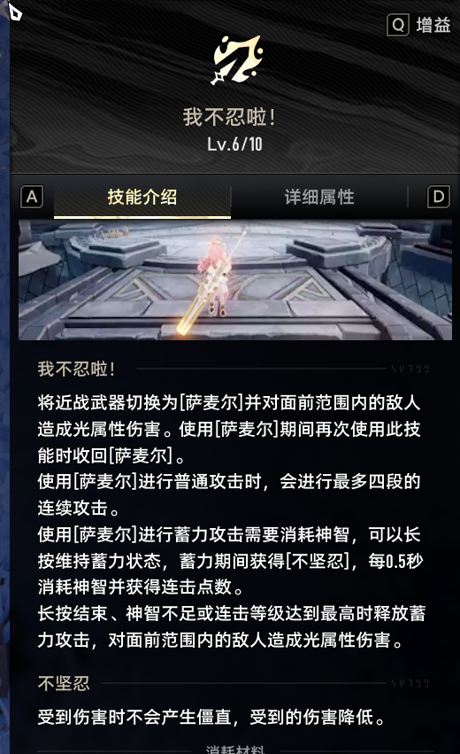 我们先看被动:连击等级提高时,对自身周围的敌人造成光属性伤害,并使[萨麦尔]受到强化。