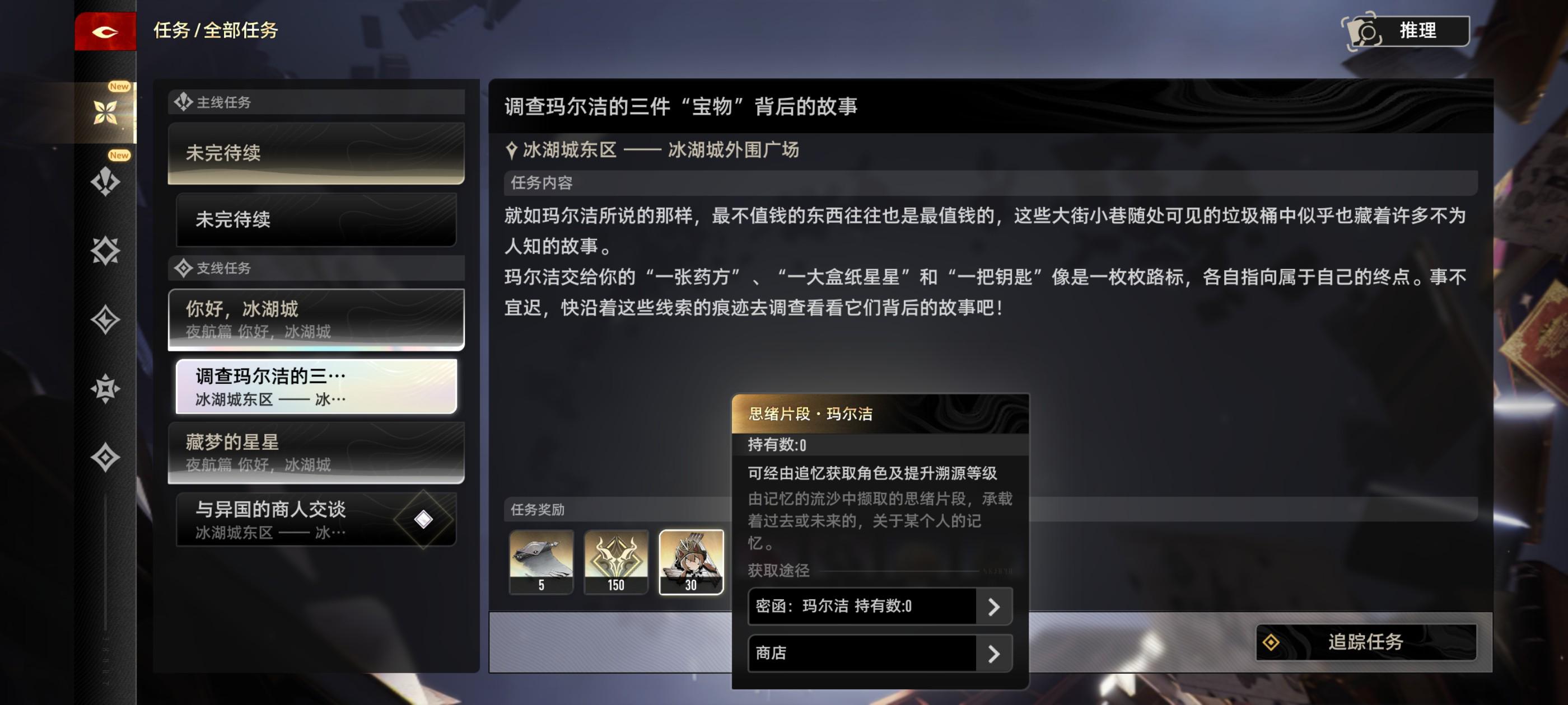 做完三个附属任务回去和玛尔洁对话就可以获得30个碎片啦