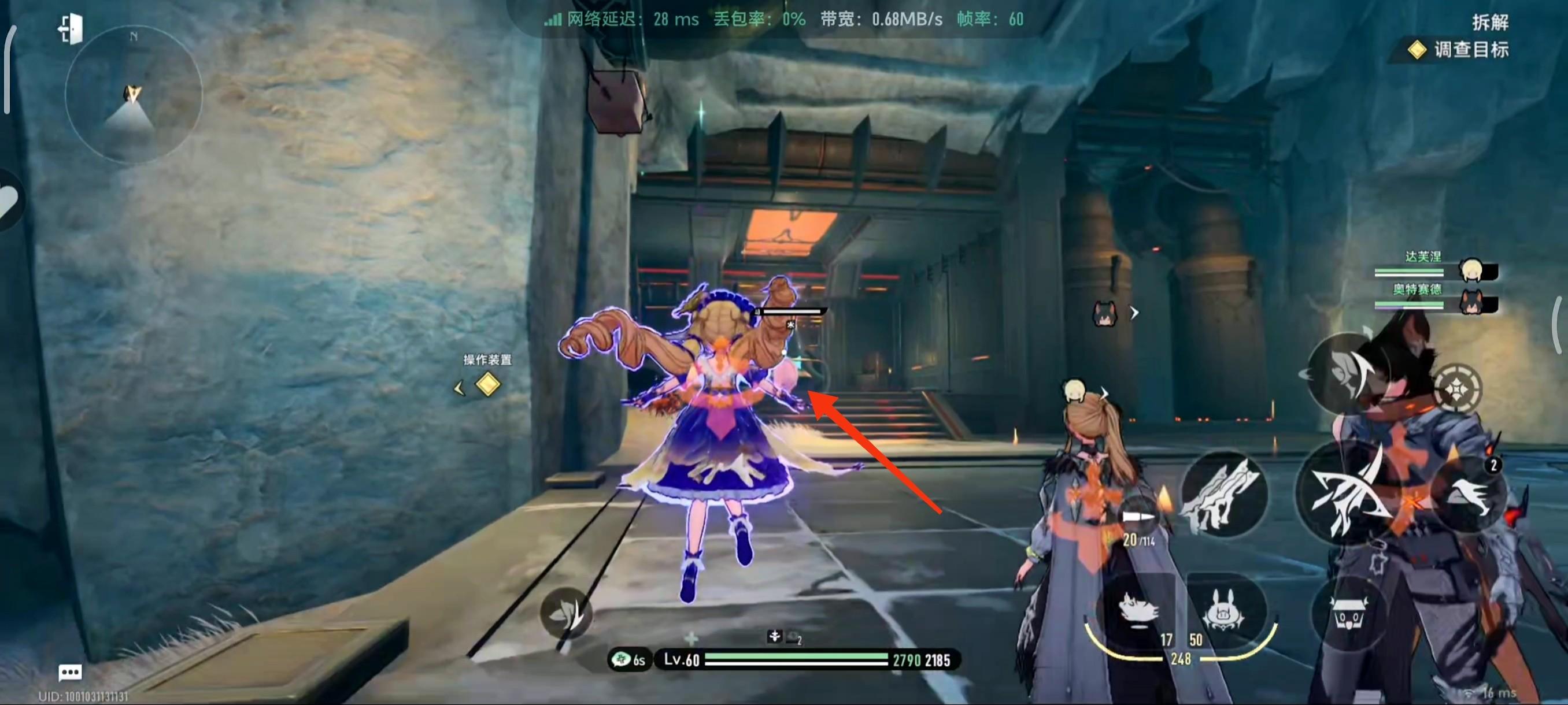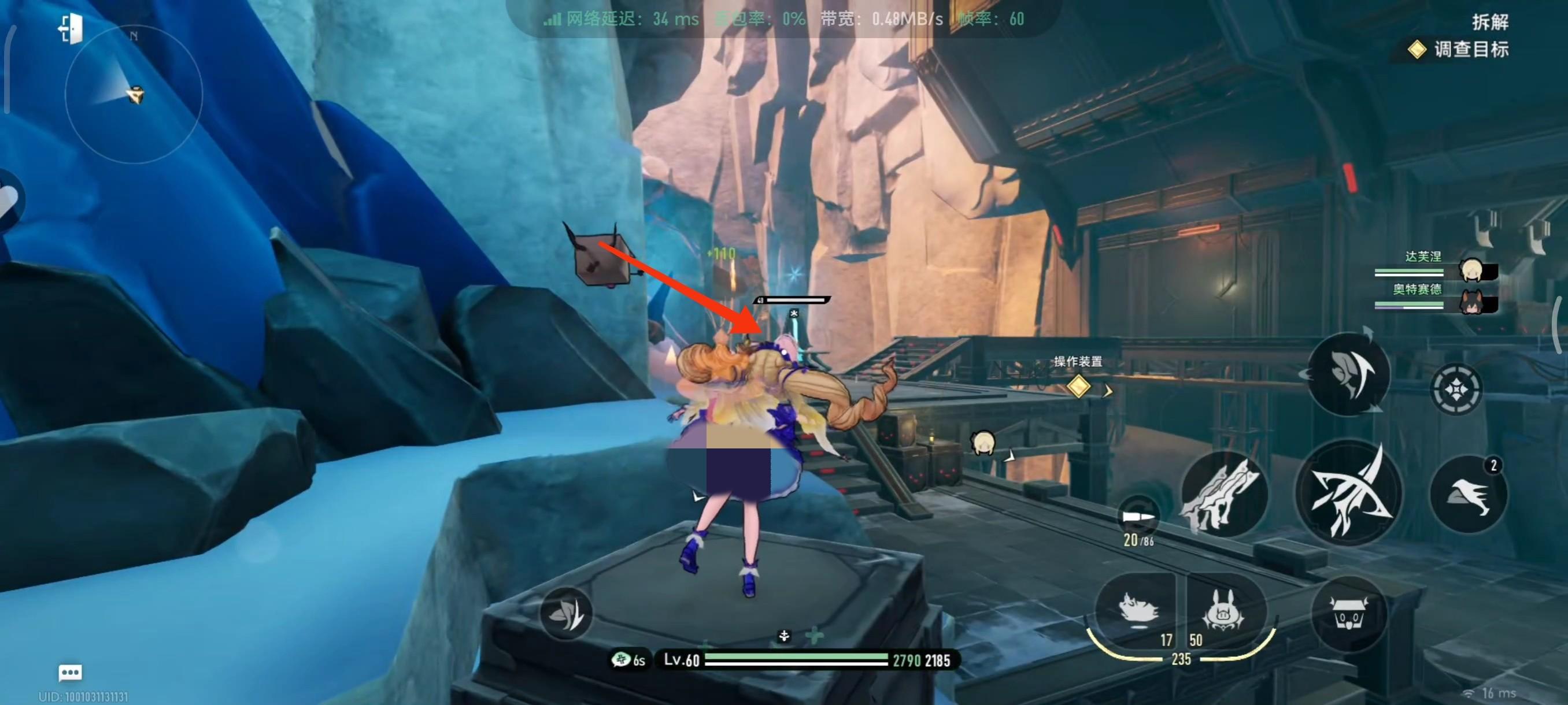 小跳使用技能,这里也可以很明显的看到我们的猪直接打到装置