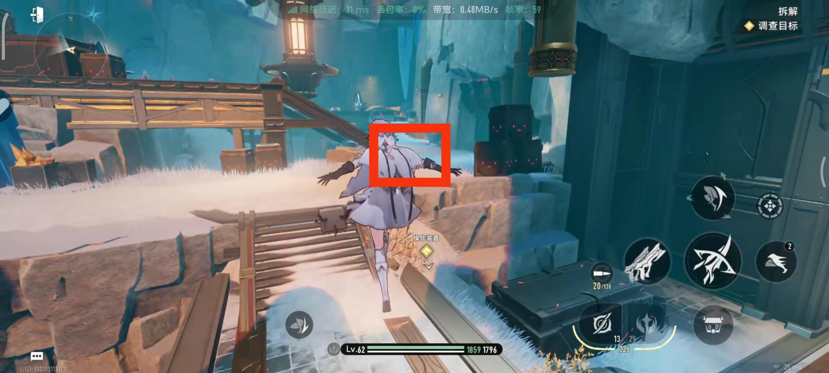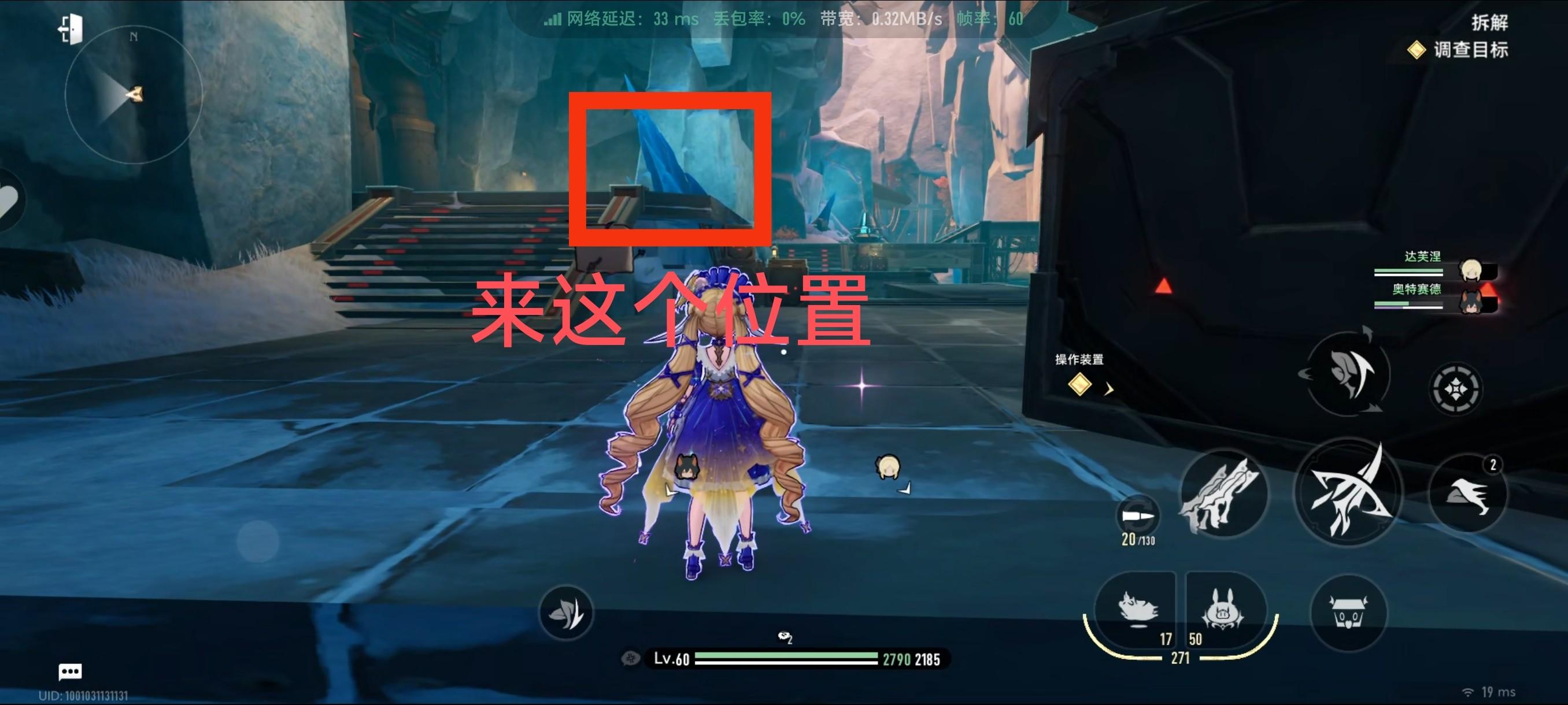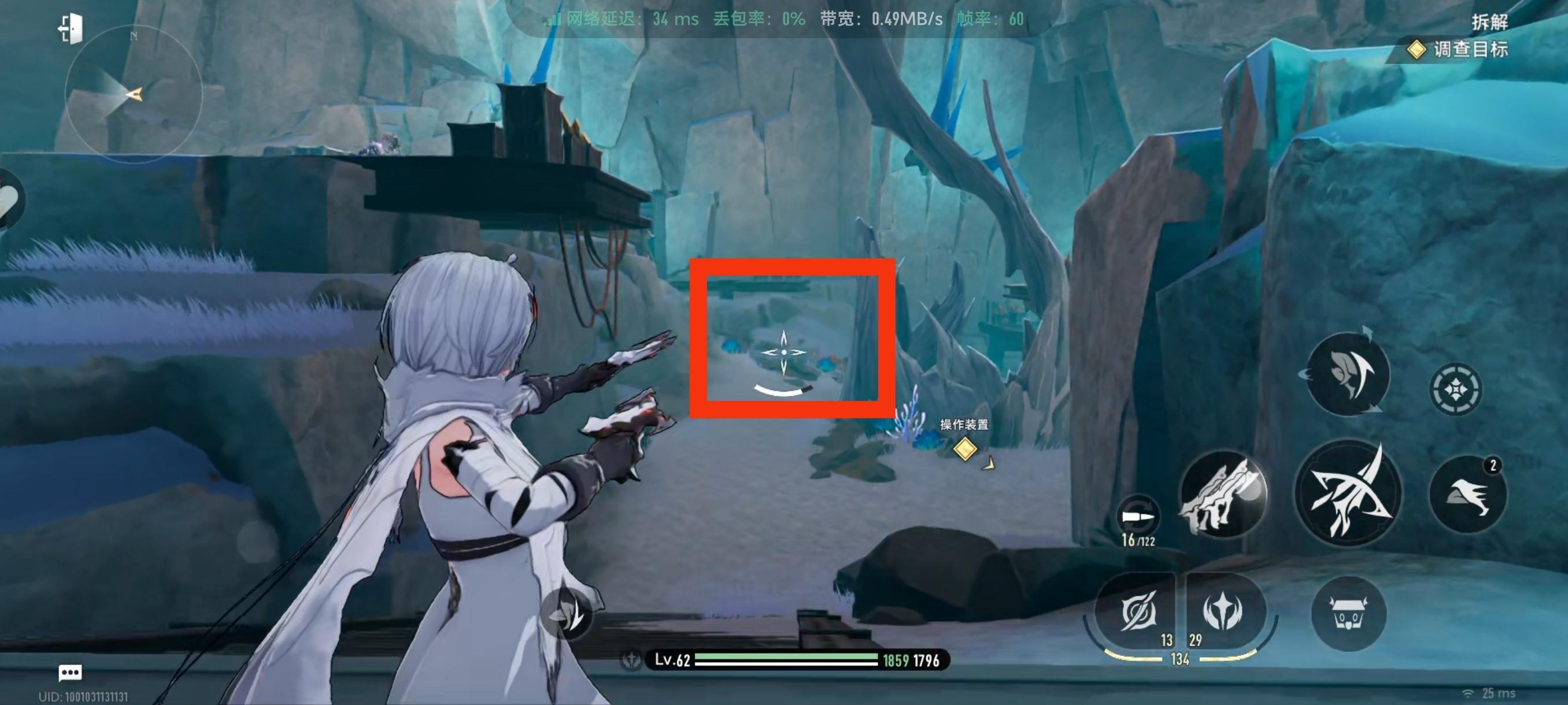 打完之后视角往右拉,然后到我框起来的这个石头这里