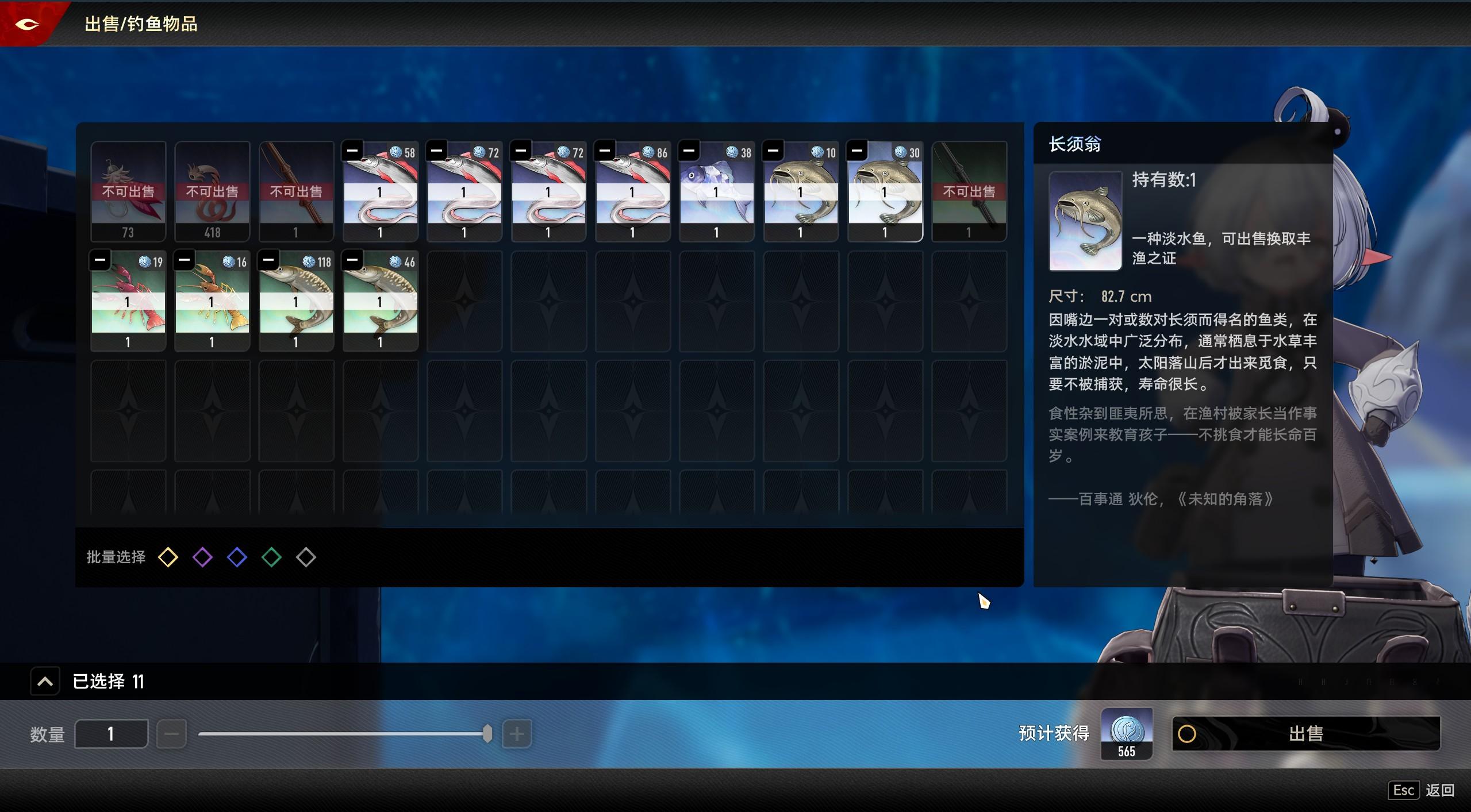同种鱼类会卖不出去,我这里选中了565的鱼,卖完以后只拿到了335。重新点售卖,背包里剩下的几条鱼无法选中,退出重进以后剩下的鱼会直接消失。这玩意吞了我好多代币