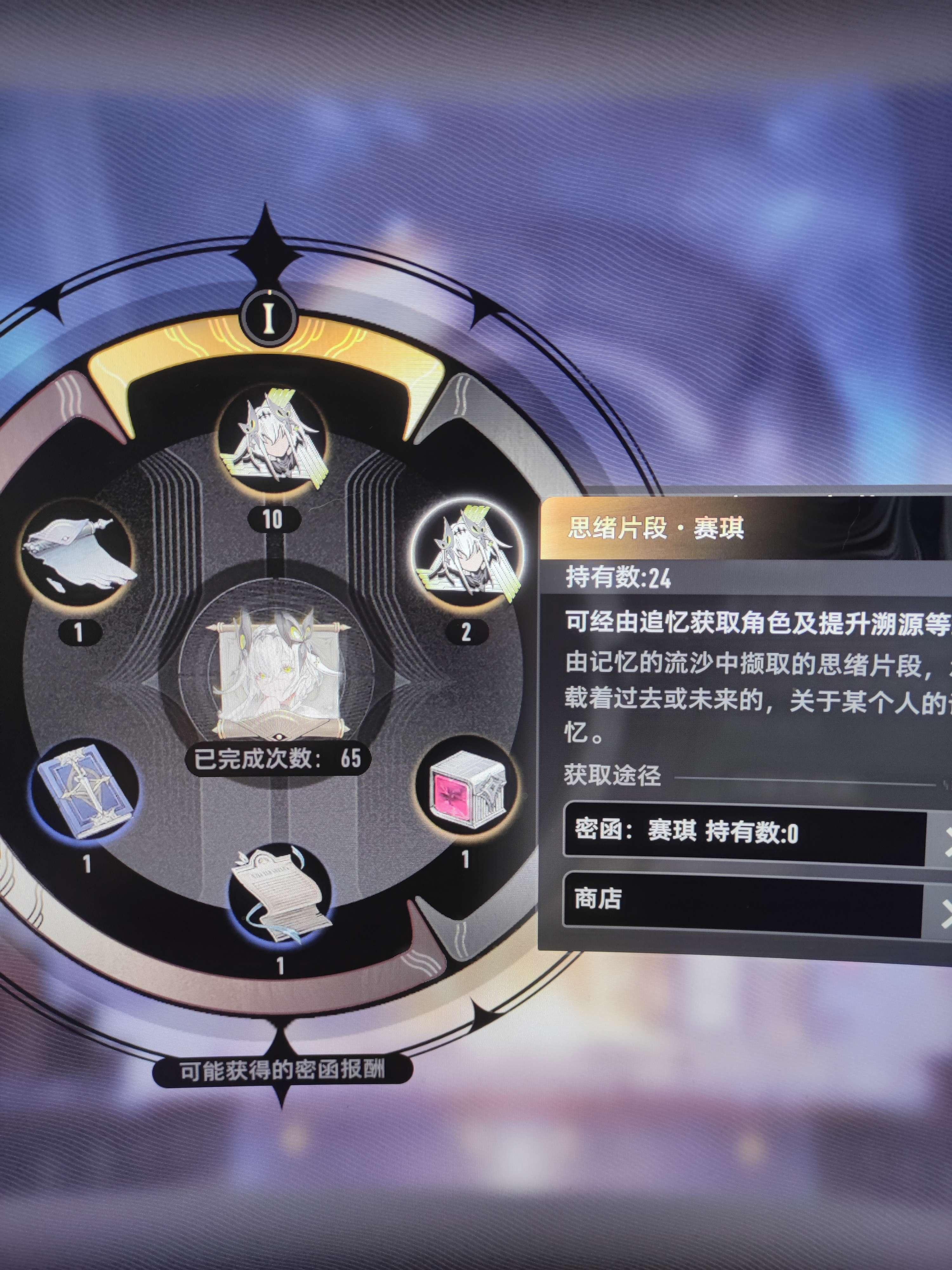 今天这掉率对劲吗?27张赛琪密函啊,只给12张思绪片段?这期的戏剧活动就这么给我卡在这结束了……