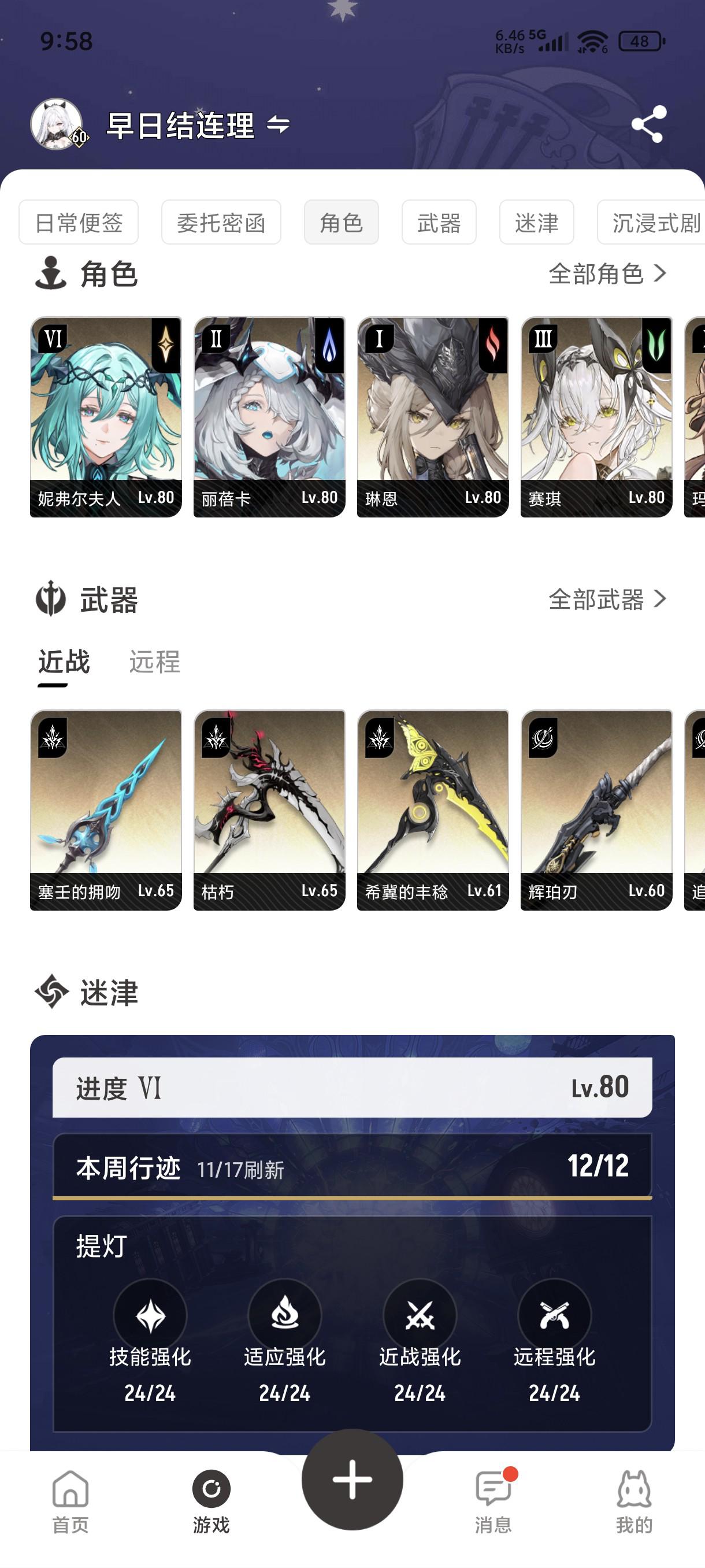 微氪(6元)也是出村了发点总结 最难55-60就是 钱 娇娇币 武器材料 三个轮流刷 钱本匹配四人打完5波就退(现在很多抓魔灵的ca建议世界四人组队) 娇娇币打难度二挂机也是打完5波就退 武器就赛琪解锁完隔窗户打装置一分钟一局(这个最折磨建议用书) 目前已经没的玩了只能刷角色和武器经验了