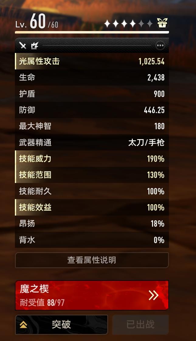 角色练度如图