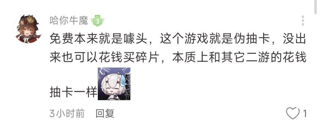 那如果我玩抽卡游戏也不氪,所以抽卡游戏也是全免费咯