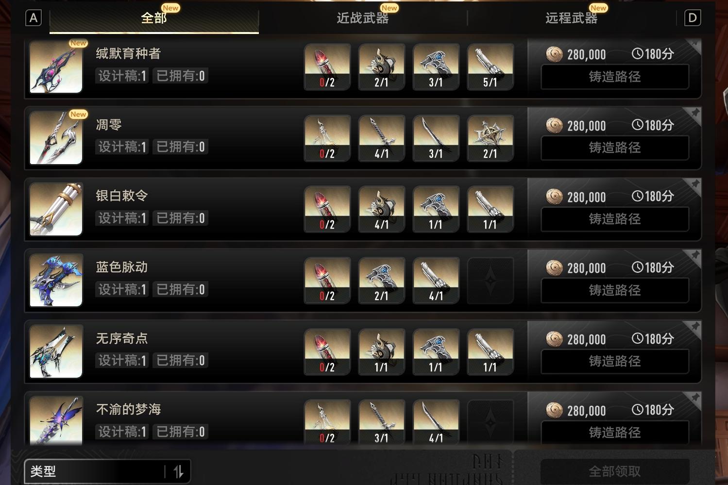 这还是只是五分之一,还有24把武器等着刷出来锻造。