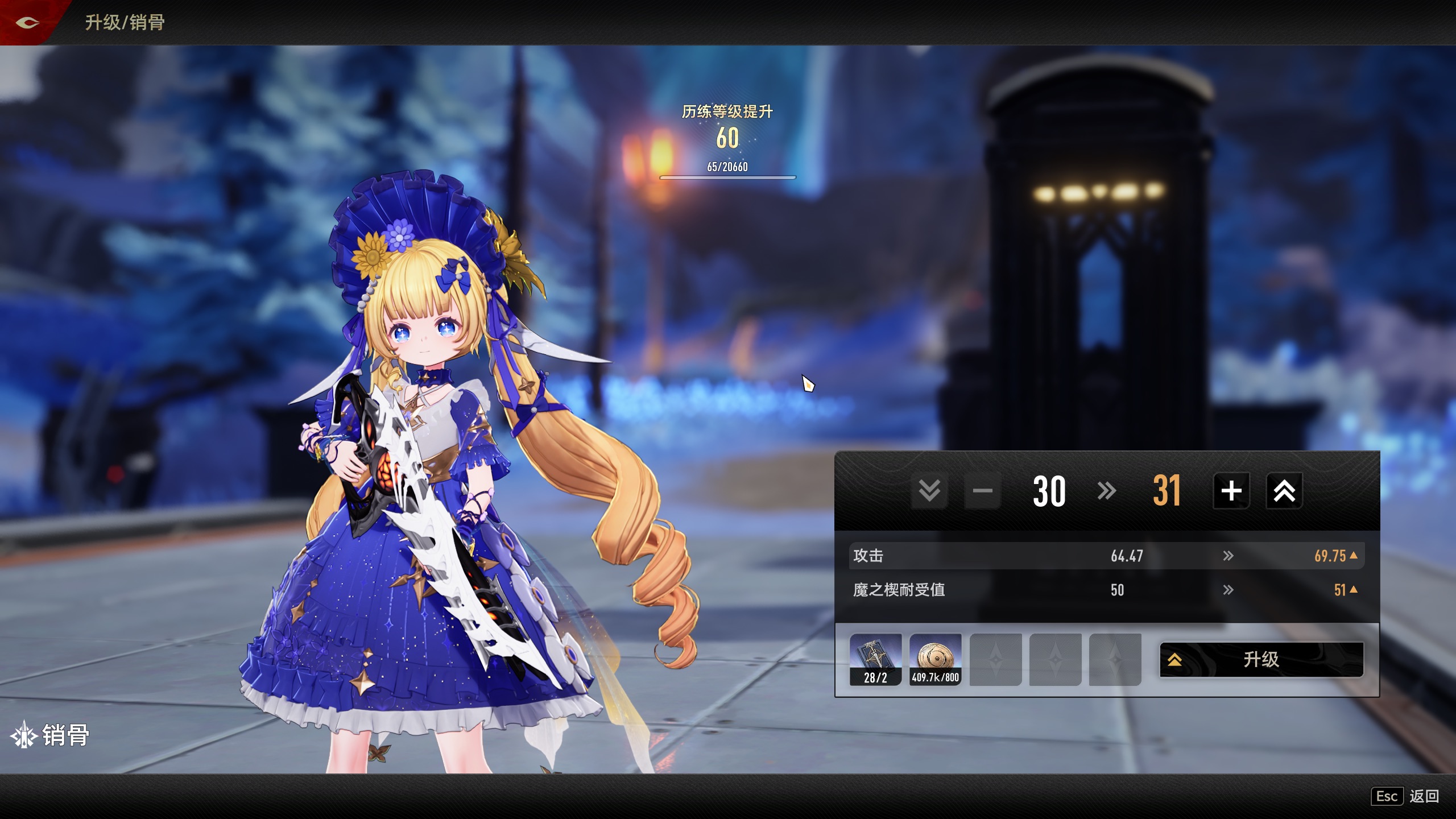 人物能拿到的都突破了,武器商店里面大概还差一两把没做,然后还有一些每日和魔灵以及金mod的经验