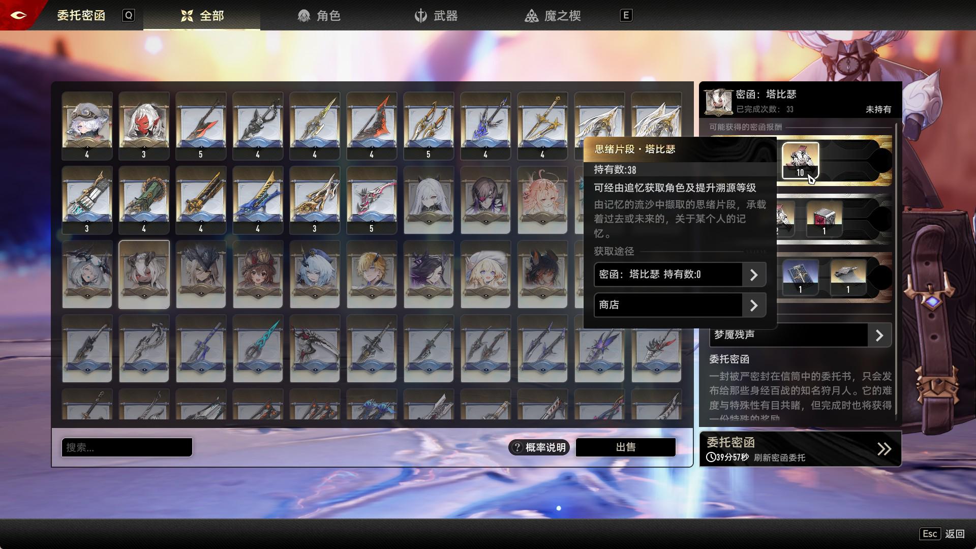刷了33张函才出38个碎片,为了刷这个黑面包刷了两周周本