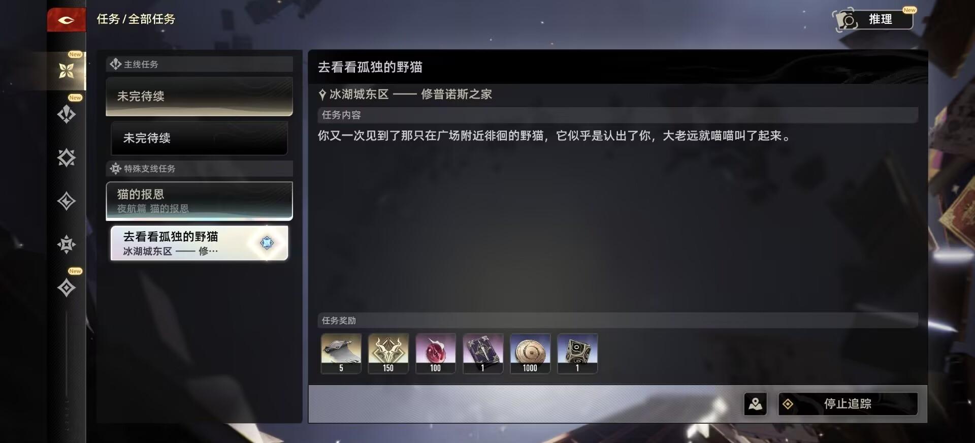 在冰城湖广场偶尔会有一只猫,多喂它几次之后会触发一个支线任务。
