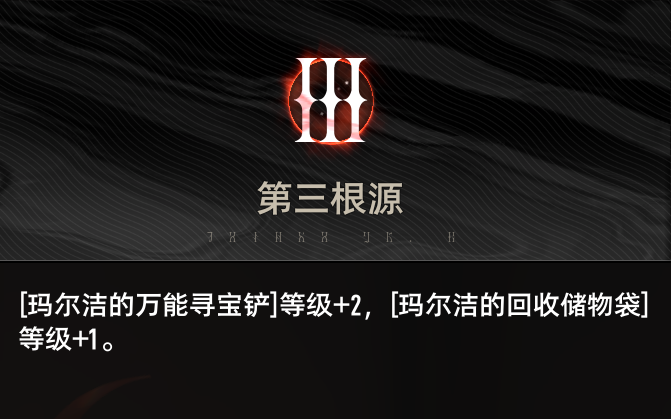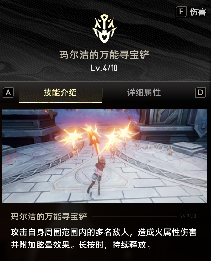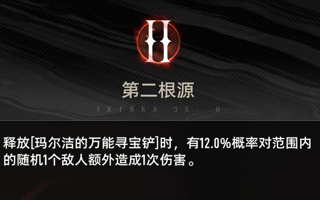 玛尔洁和队友拾取掉落物后,自身获得一层永续的“捡到宝了”,增加自身技能威力,最多20层