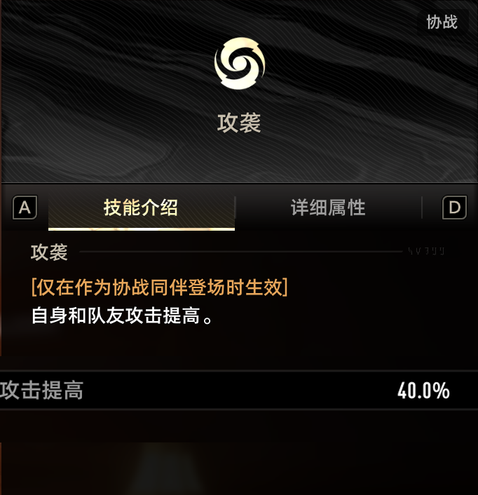 自身和队友获得攻击提高40%效果