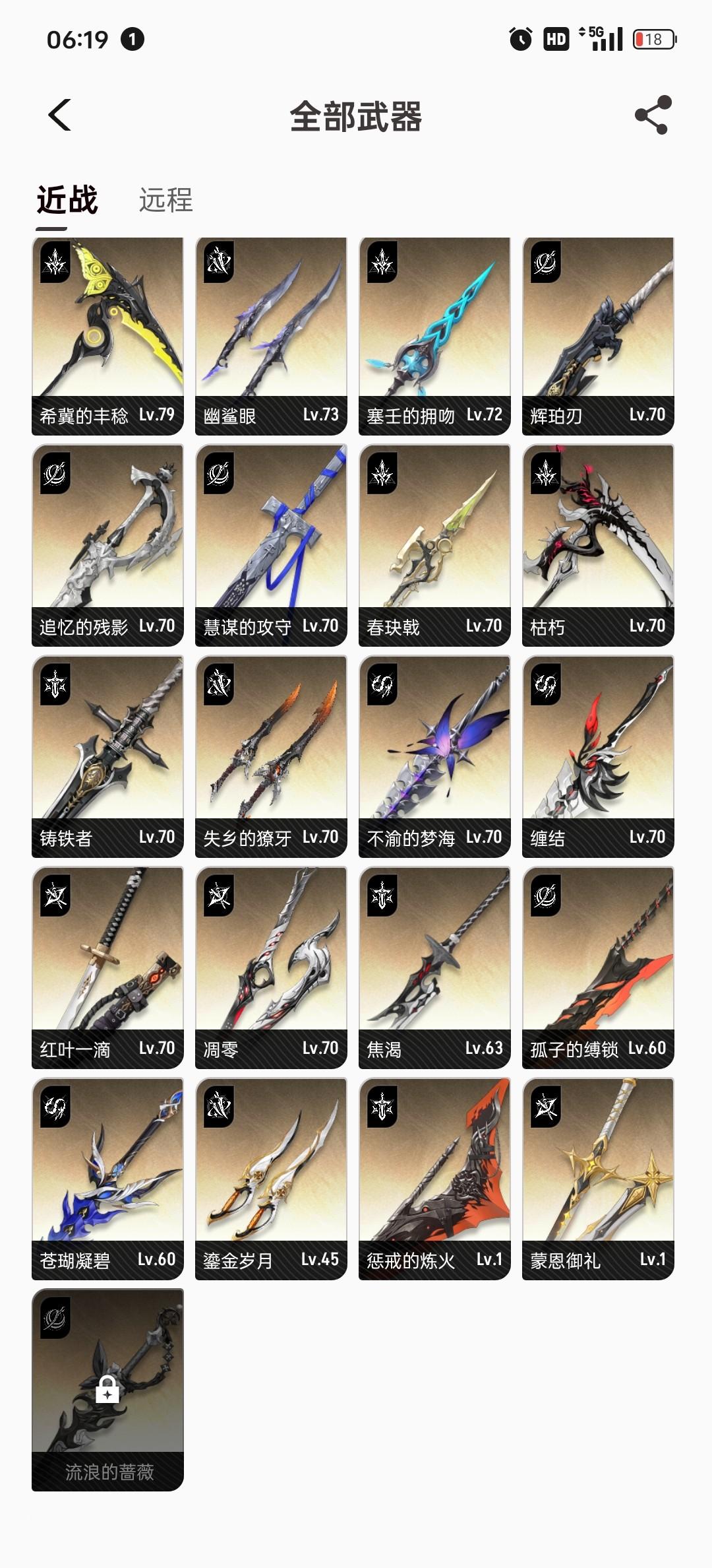 还差一把武器近战就全了,下周开刷