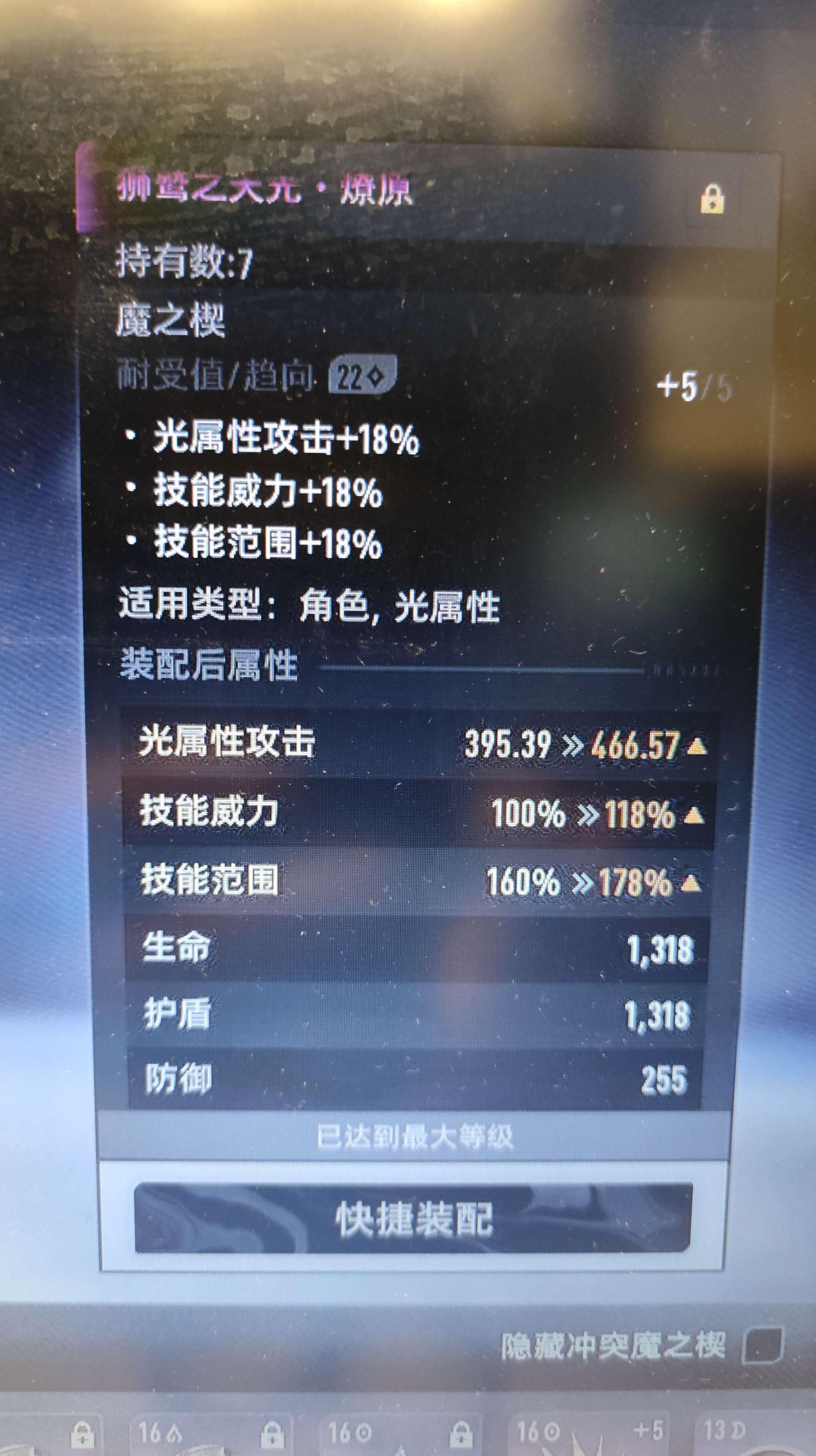 在什么都没有的情况下,燎原的光攻击+18%确实是没问题,但是炽灭的攻击+96%却是只增长了0.64,我不明白了
