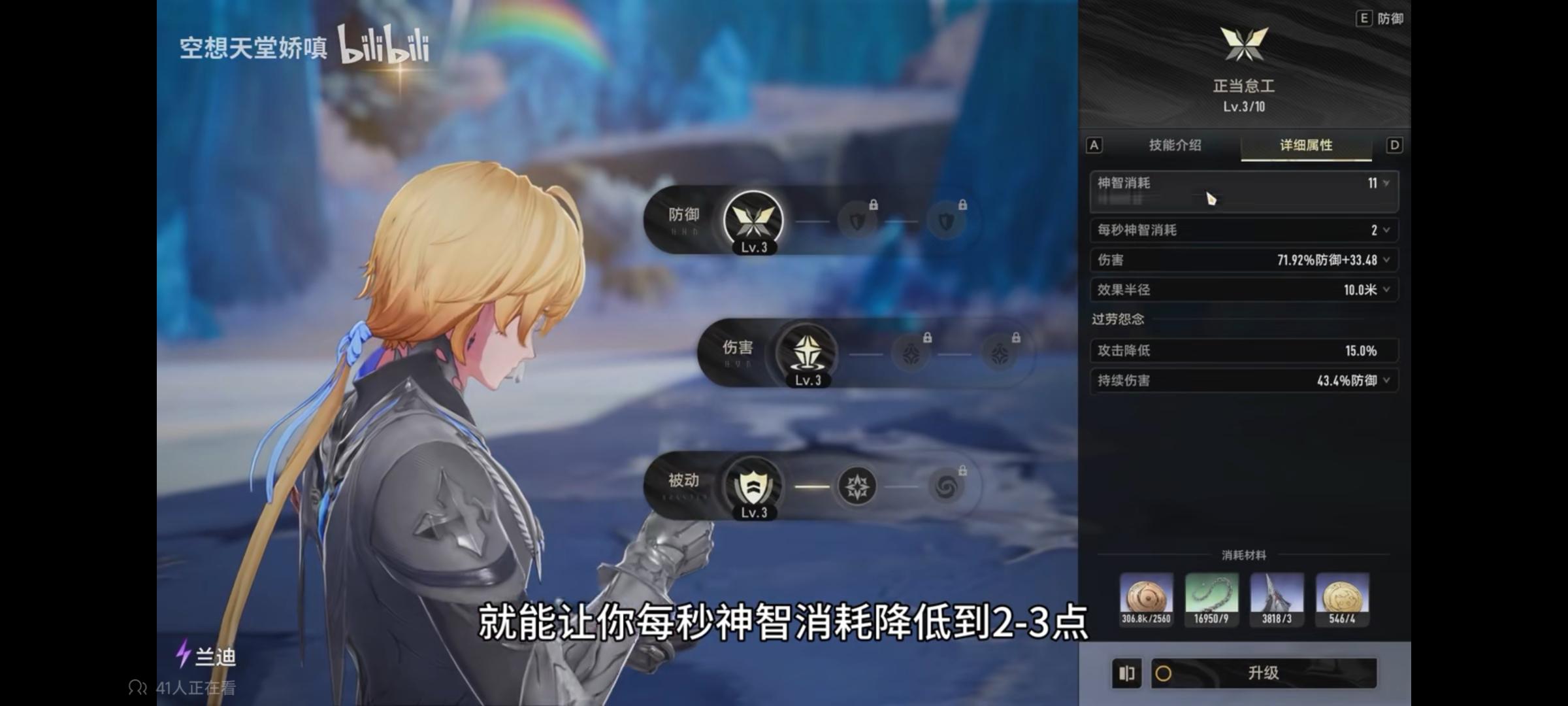 神智恢复量和最大神智相关,主控兰迪带上雷安神,可以让提高理智恢复量到约9点/3秒。再带上蓝色的牧神系列提技能效益,降低e的消耗