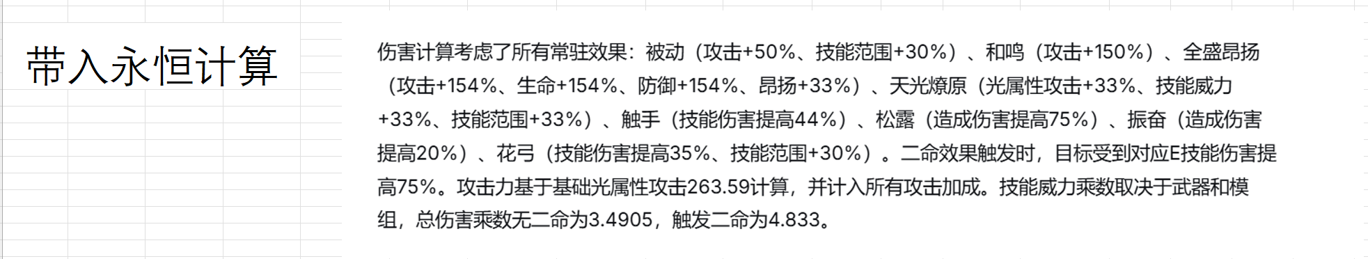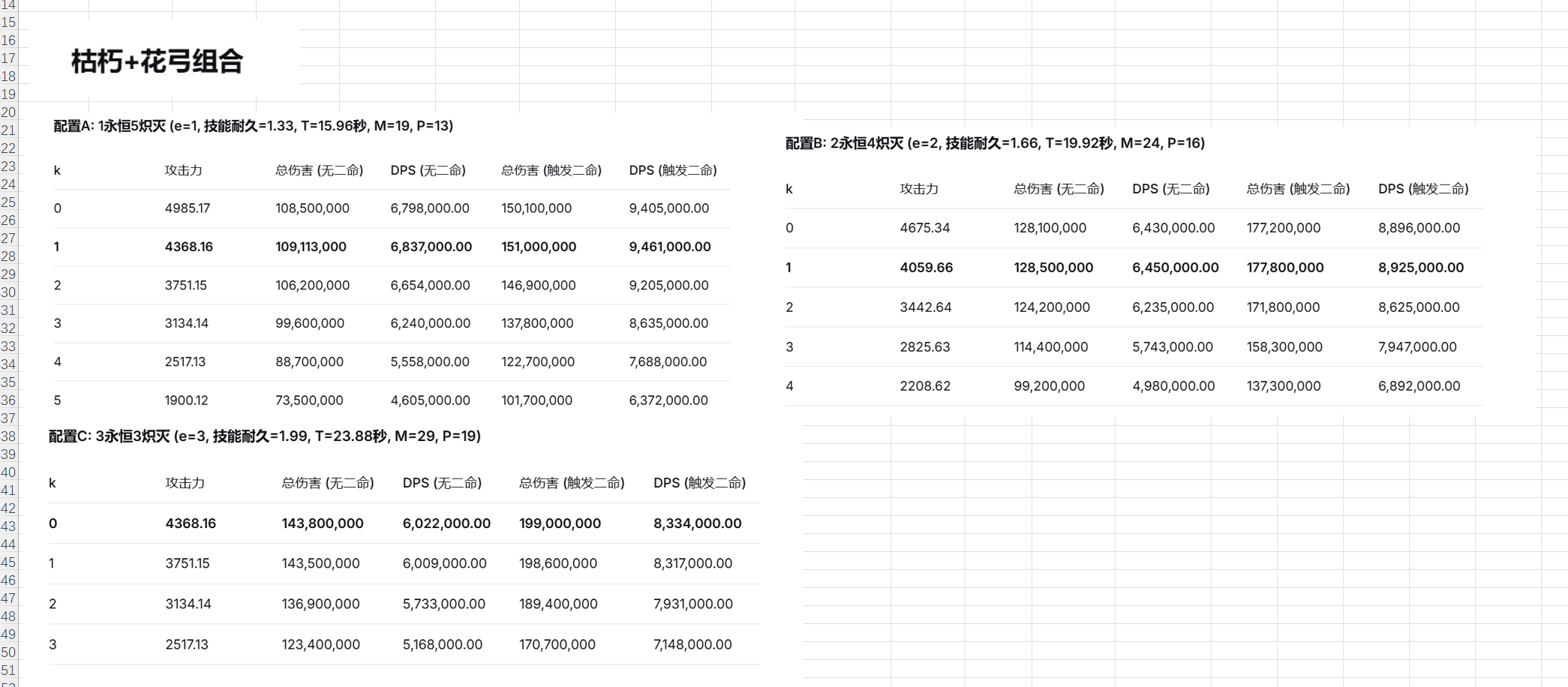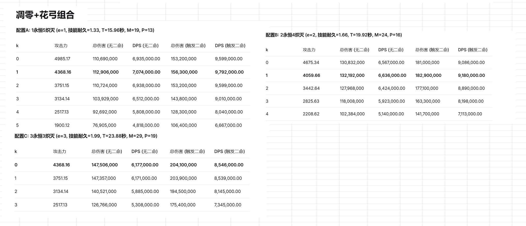 由于前文已经知道决斗等增伤类对于夫人来说不如4+2配置好,故已不再计算