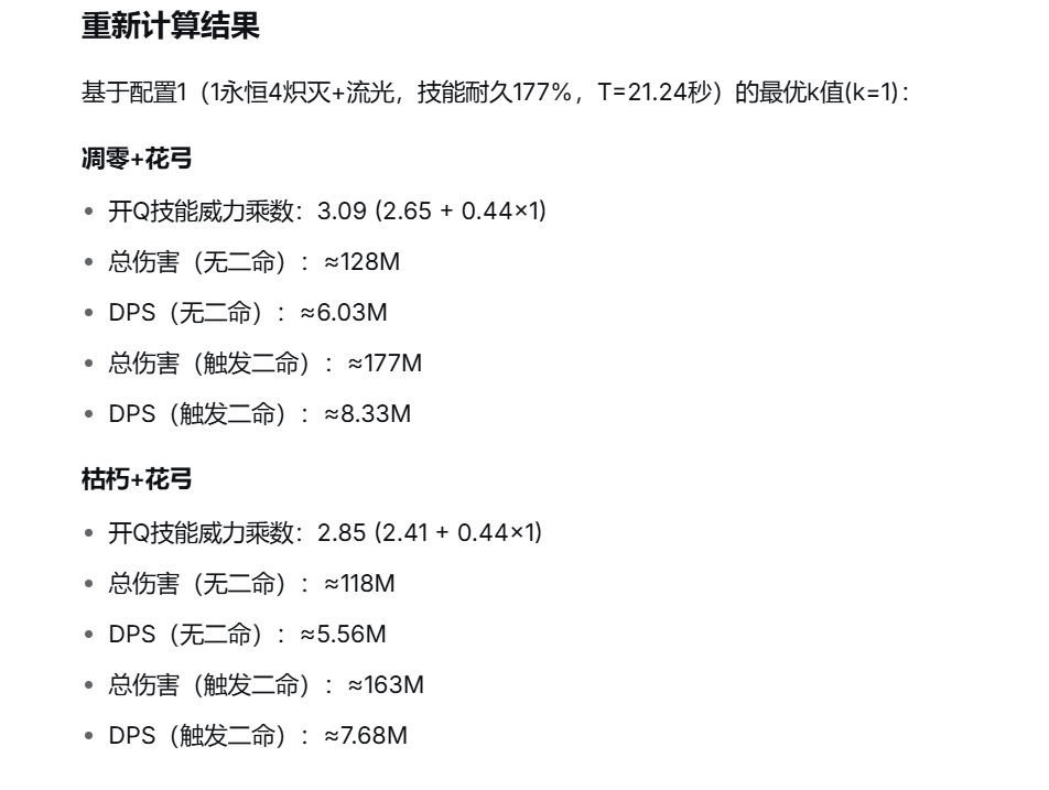 结论:1永恒1决断4炽灭(考虑永恒时)(总伤最高)