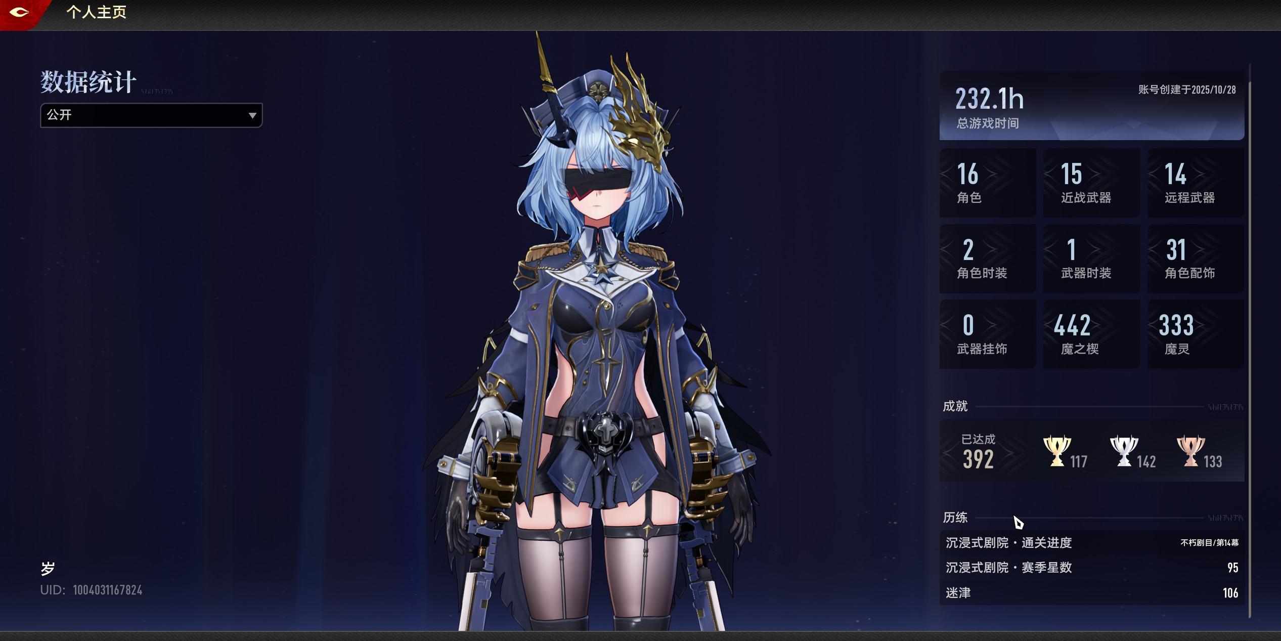 100多小时已经开始摆烂了,每天顶多打一两遍迷津,其余时间全都水母挂机,点点继续就够了