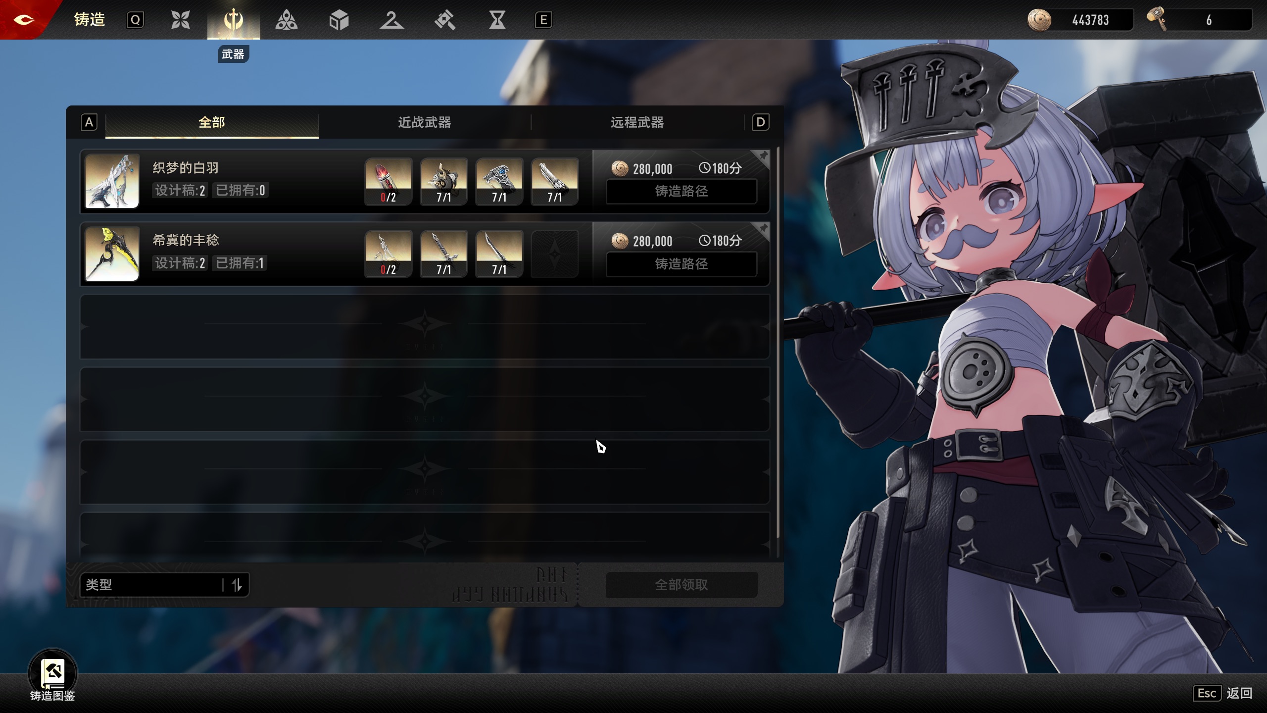 问下武器是不是每个部件有6个就可以不用拿了