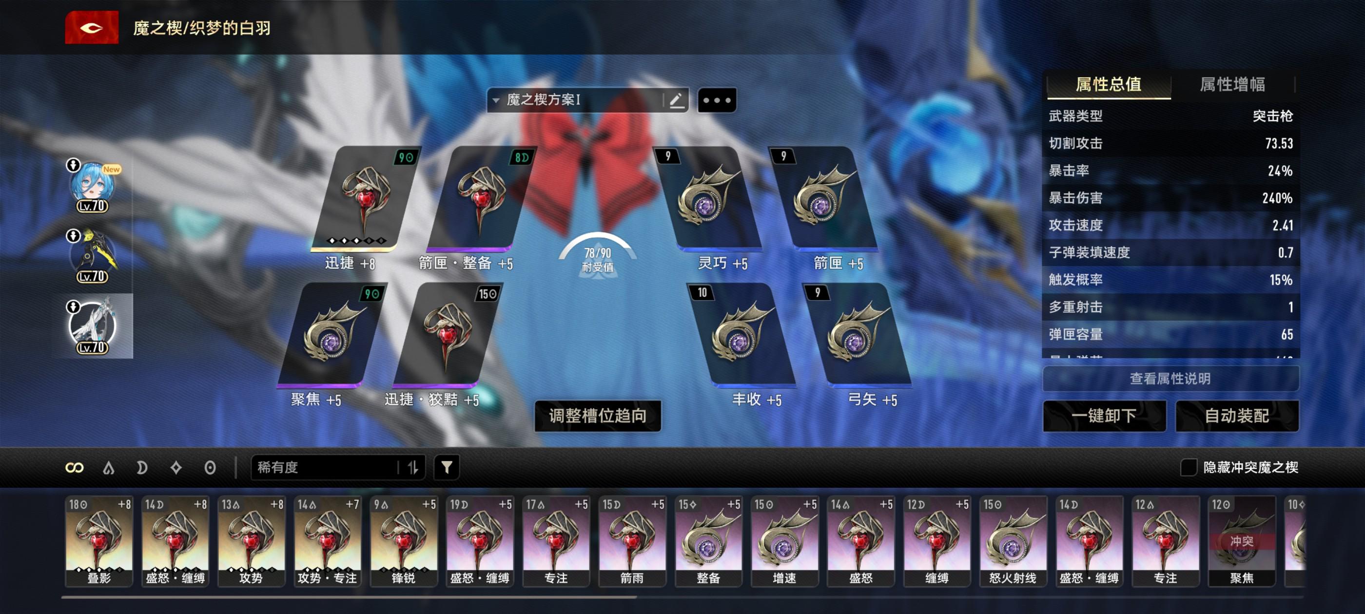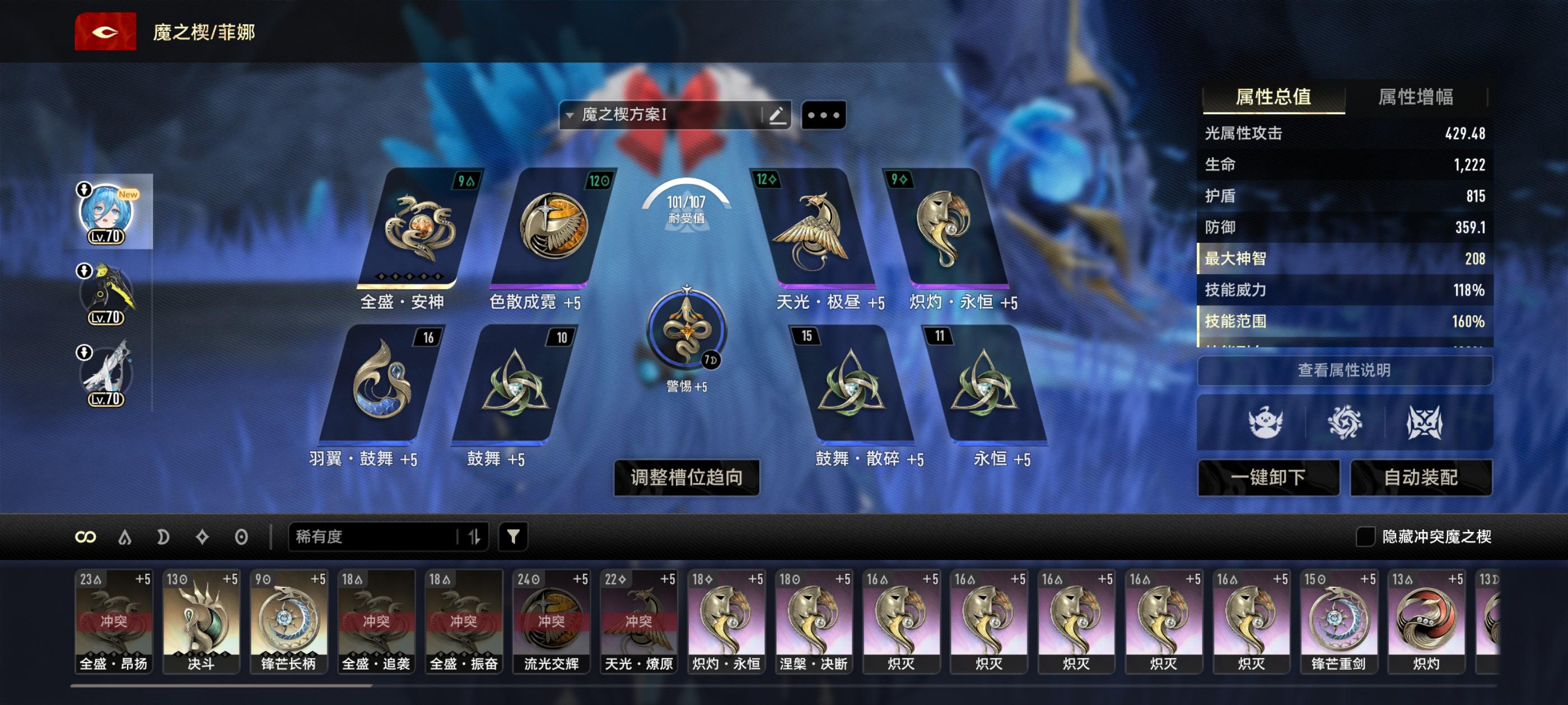 60级以下可以像我这么带也可以把蓝永恒换成紫的,因为角色本身需要堆效益和耐久,60级以下没有金鼓舞+10效益可能会不太够(蓝永恒没换的原因是没转换器了,今天只搞了四个转换器)
