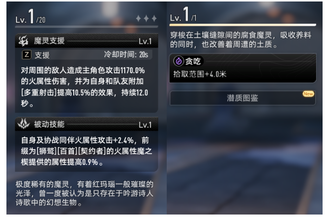 (左侧为活力魔灵,包含主动+被动技能;右侧为失活魔灵,包含潜质词条)