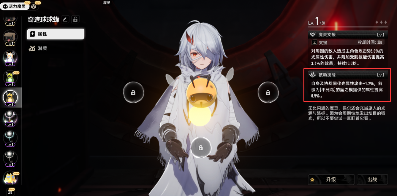 突破效果:活力魔灵的支援和被动技能只能通过突破升级。