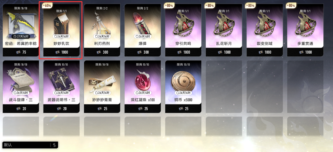 妙妙乳饮产出自沉浸式戏剧,一个半月才刷新一个,比较珍惜因此建议留给大月卡的购买的金魔灵。