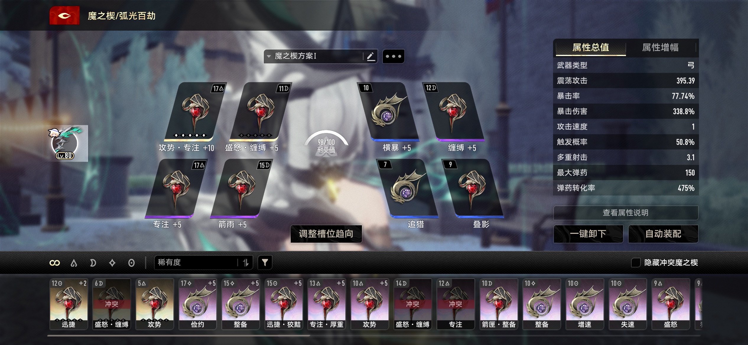 突然发现魔之楔满暴击和满触发率很难同时满足如果想最求一种达到100%别的属性就回掉。很多但是这个弓箭需要暴击和触发率同时兼得,想问下多重射击额外发射的子弹能不能触发暴击及伤害额外效果呢