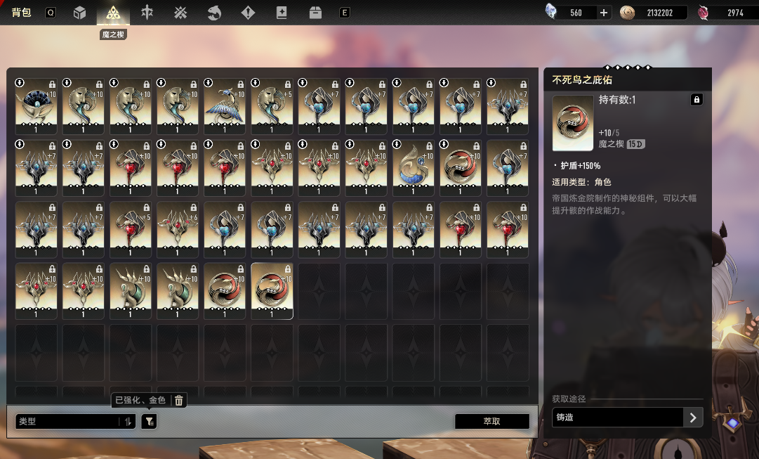 是被朋友介绍来玩这款游戏的喵~听说只要肝就有提升~~大概从50级还是55级(当时还没练水母,走了好多弯路,挂本好累,后面搞了套紫MOD出来舒服多了)开始每周末规划下周的目标~~~能达到最好,肝不到拉倒,途中有更有兴趣的东西随时换~~~主打一个随意瞎勾八玩,先不管能不能实用,反正每天有东西能刷刷就行~~~先附上目前(2025年12月1日)包包里已强化过的金MOD截图(但主要还是图鉴党,碎片优先开角色和武器图鉴)