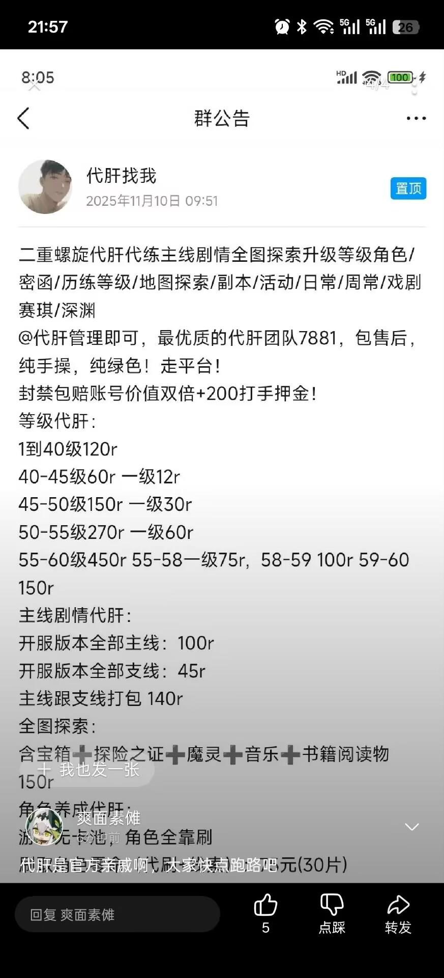 公告叫大家不要代肝,私下又和代肝合作?