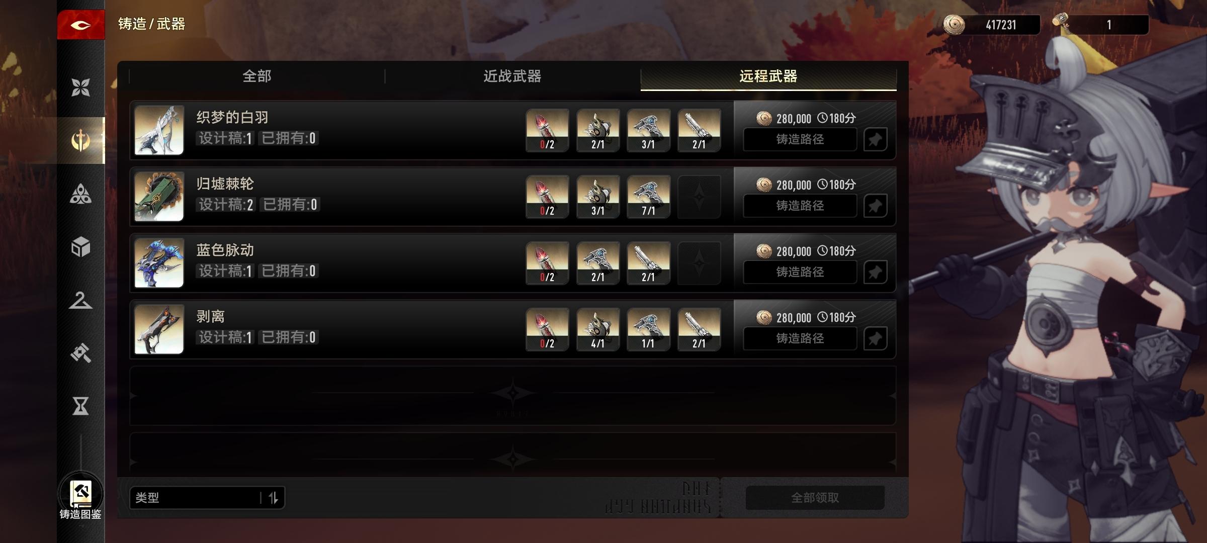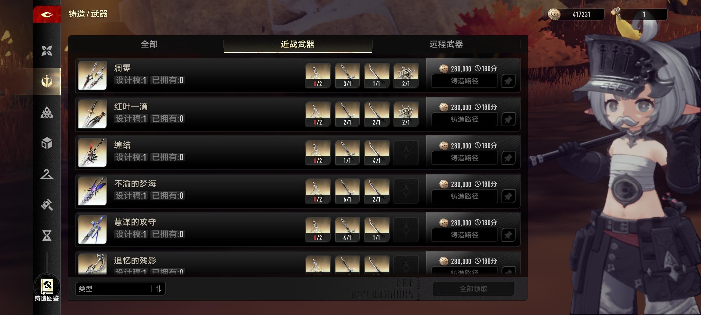 怎么锤子都用完了。。。不建议堆一起打,会卡铸造时间