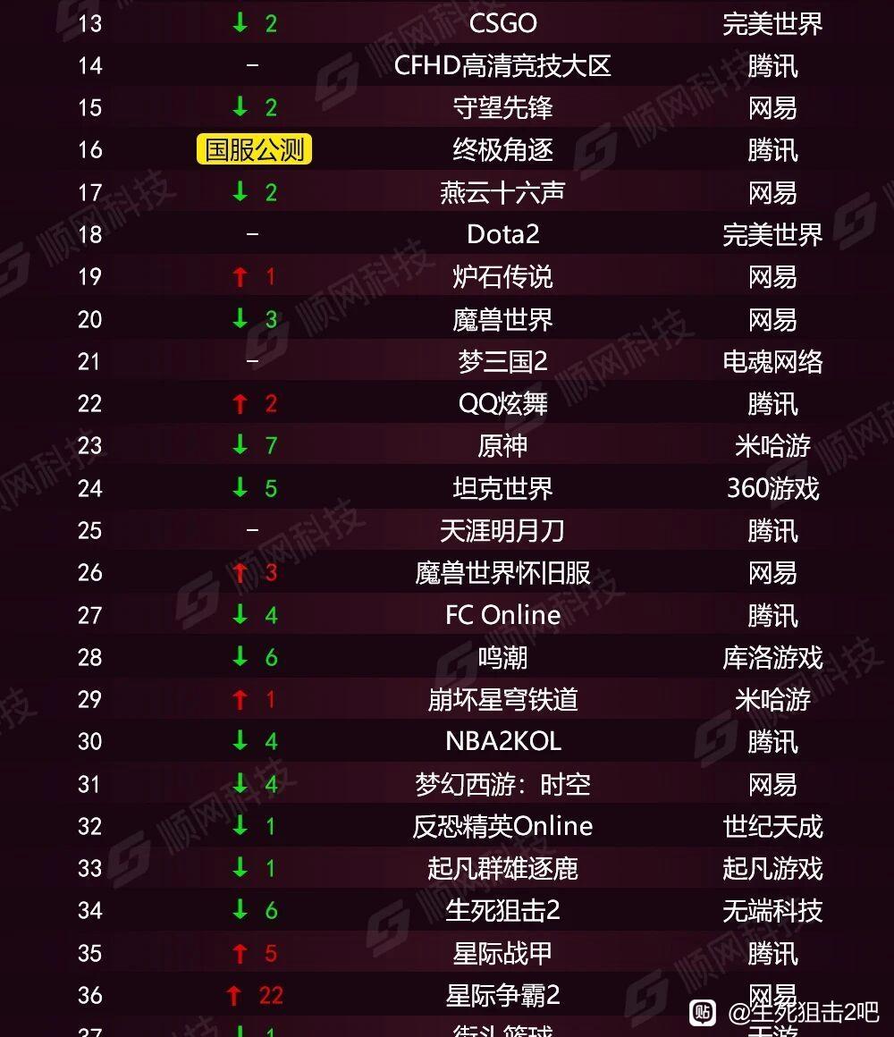 顺网?应该是网吧游戏热度排名
