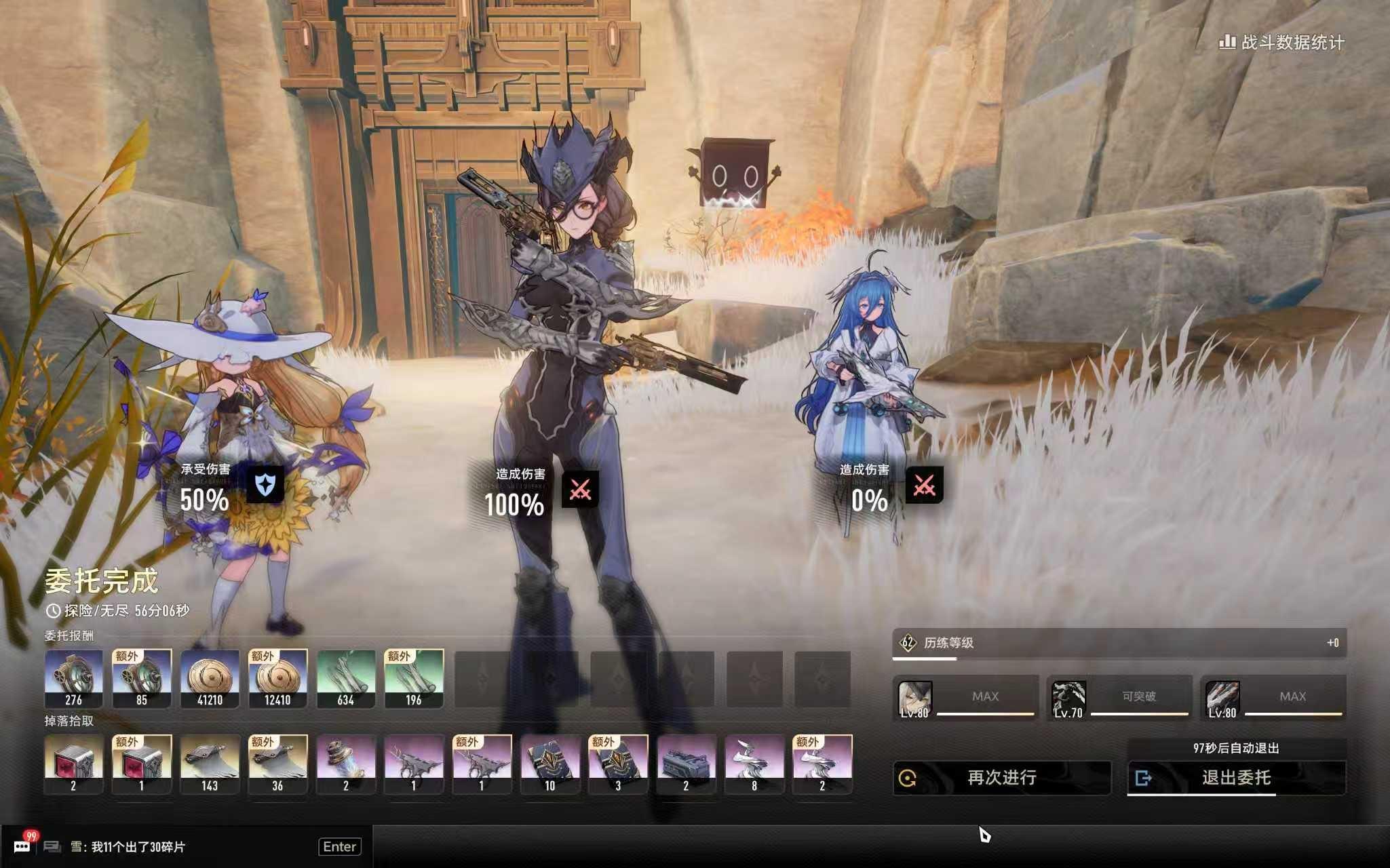 30级风本打穿魔之楔!目前62级加成,辅助武器记得带 衰微 能提高菲娜的自保,辅助中间带磐石。女枪站位最好往外面偏一点,这样能打到辅助周围。自动射击 先平a,然后再按t,再按平a就好了!