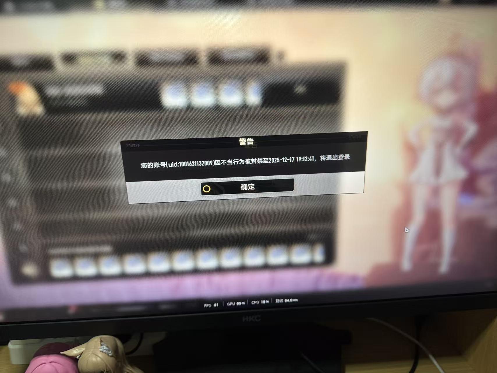 真行🤙,在界面啥都没干就被封了,刚想开始刷副本