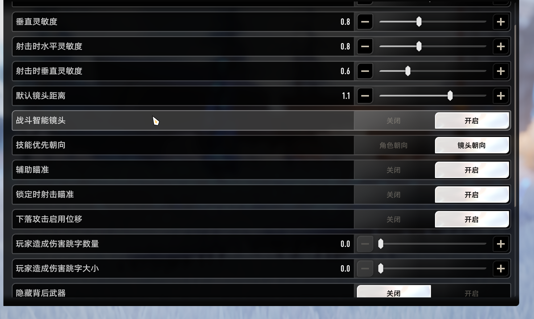首先这个是镜头,其次这个就类似于鸣潮那种镜头修正,建议是关了,否则就会出现你跟你的镜头打架