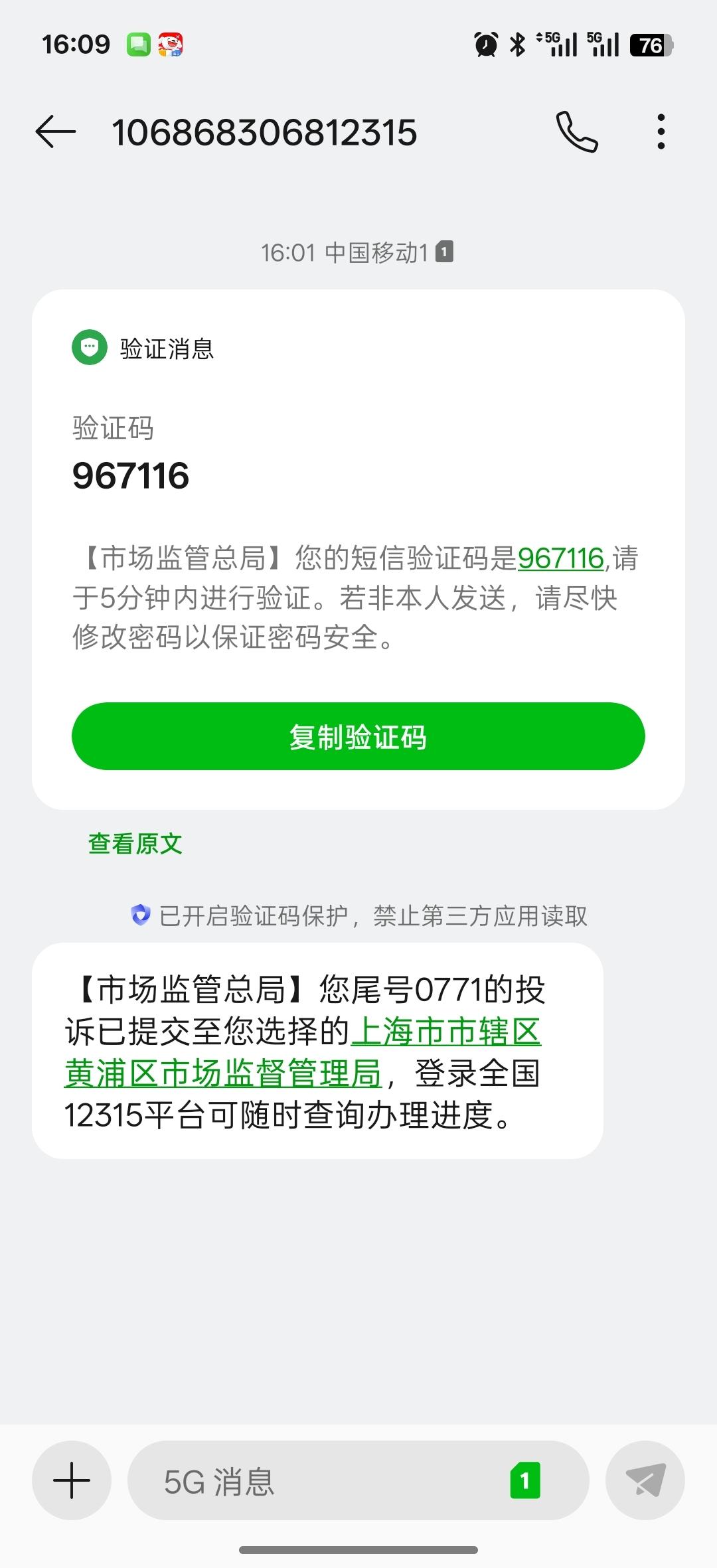 抱歉 不是那边的人朋友 这个投诉是向公司所在地投诉 也就是公司所在的12315投诉 所以是那边的12315发短信告诉我受理了