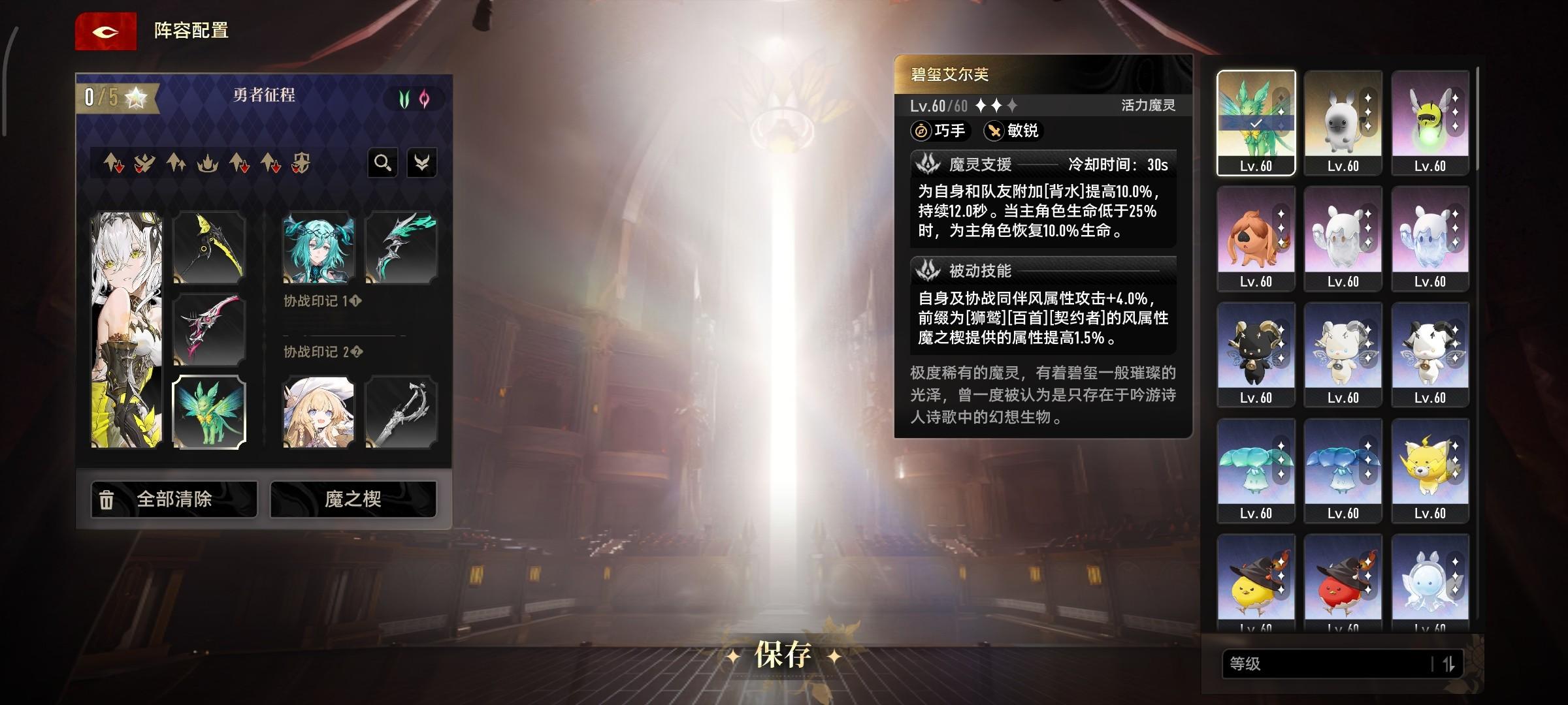 艾尔芙,带菲娜吧,菲娜对单提升很大,打精英怪和boss很快。辅助带俩防守向的魔之楔一般就死不掉了,小怪层清慢了菲娜可能会死,重开就行,boss层六命赛琪伤害够的
