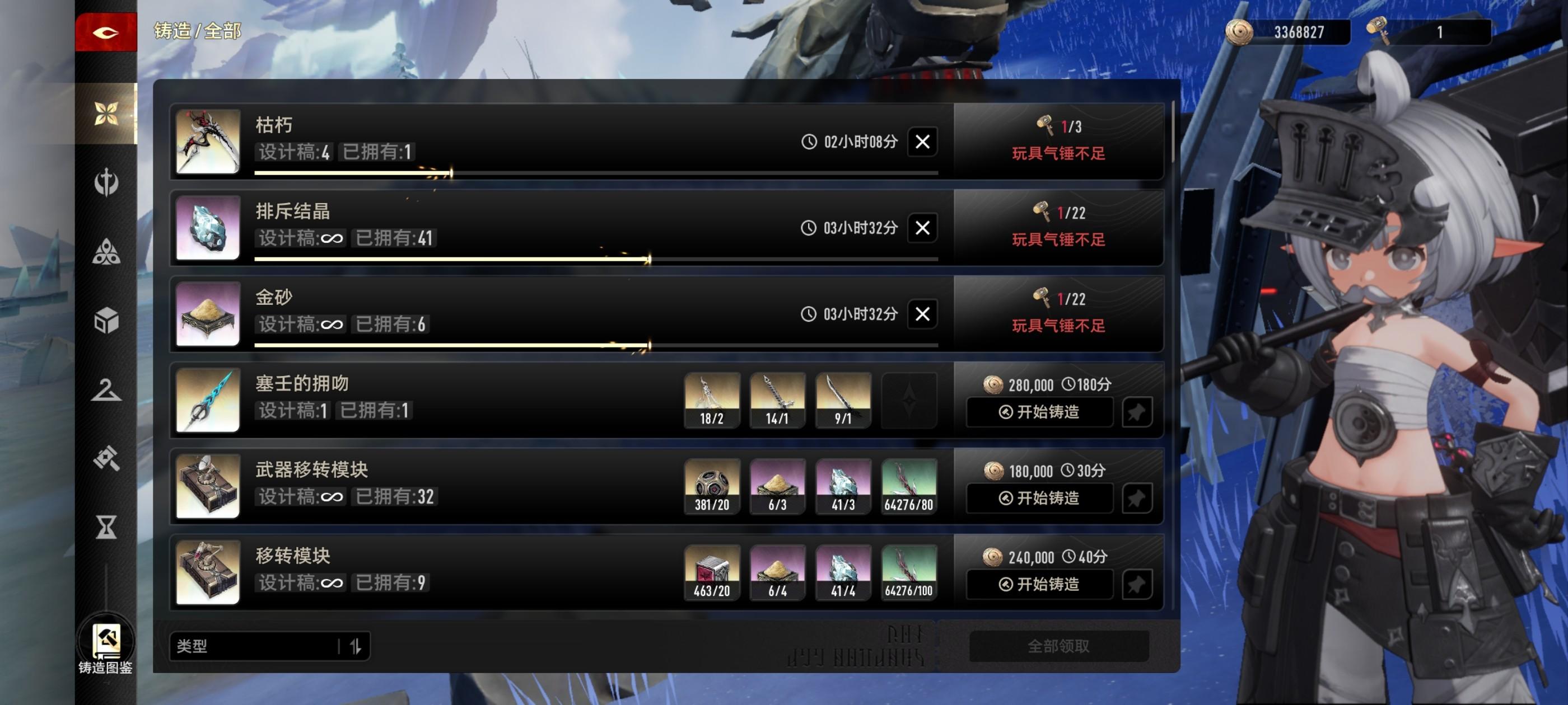 那我可以装一下了,菲娜专武28把 熔炼3,也就是4把武器